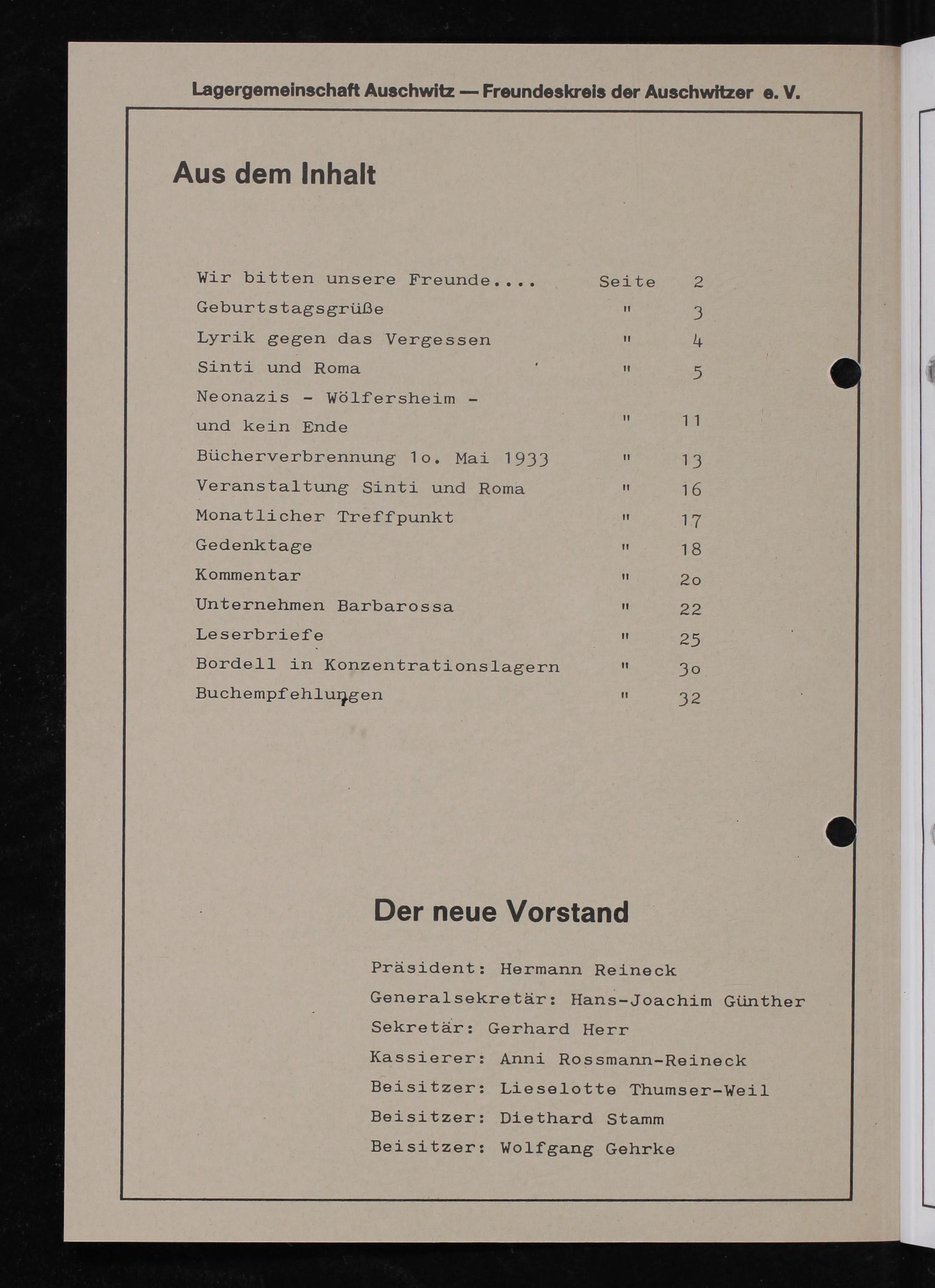 und kKein Ende Bücherverbmennung 1o. Mai 1933 n 15 Vewanstaltung Säntäi und Roma n 16 Monat1Lächer Treffpunkt ſ. Gedenktage 4 18 Kommentar 20 Unternehmen Barnbarossa 1 22 Leserbiefe W 25 Bopde11 in Kopzentretenslegern W 20 BuchempfehLungen 1 32