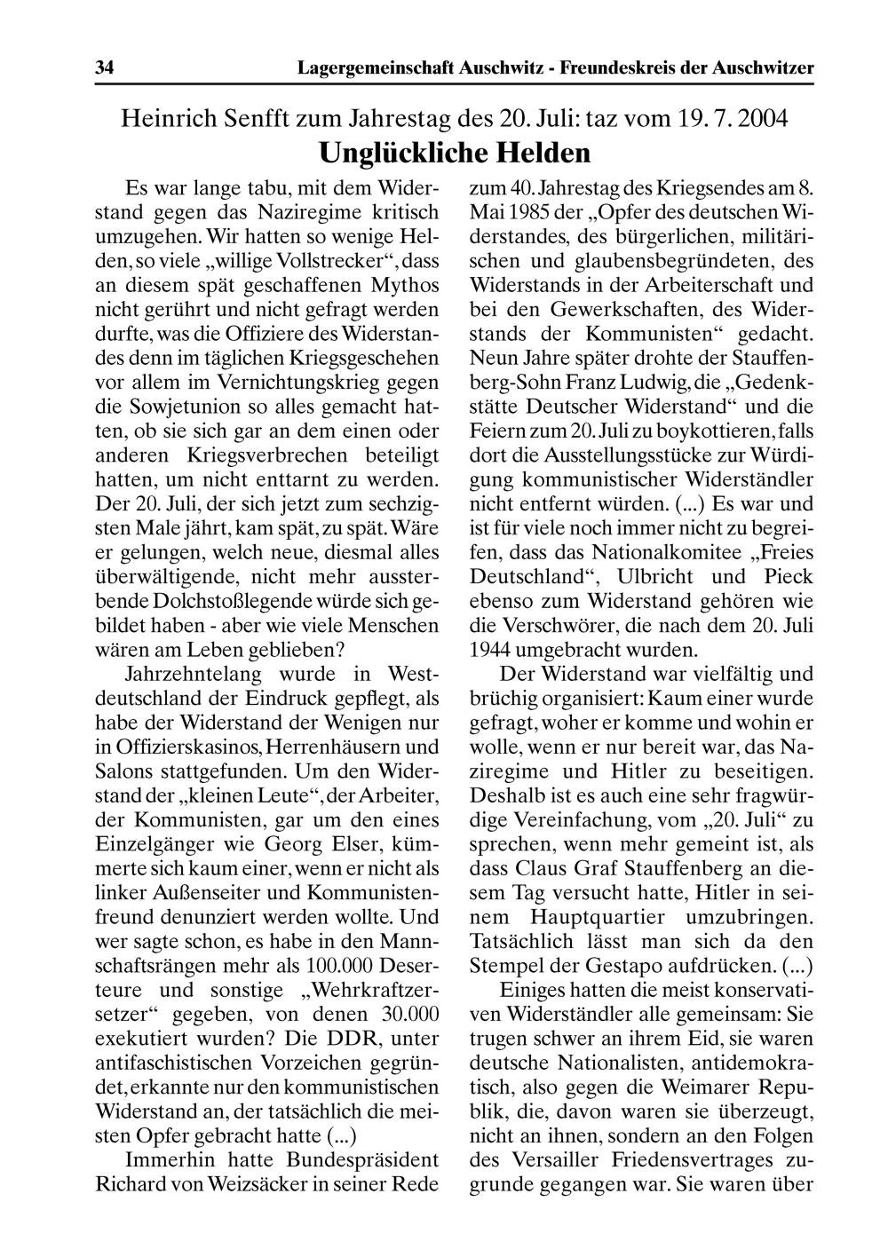 Heinrich Senfft zum Jahrestag des 20. Juli: taz vom 19. 7. 2004 Unglückliche Helden