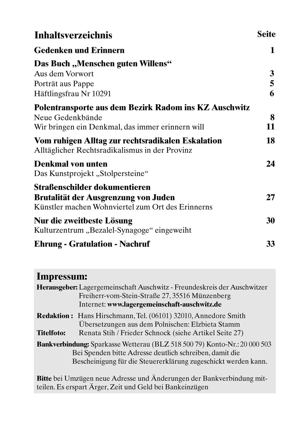 Herausgeber: Lagergemeinschaft Auschwit?-Freundeskreis der Auschwitzer