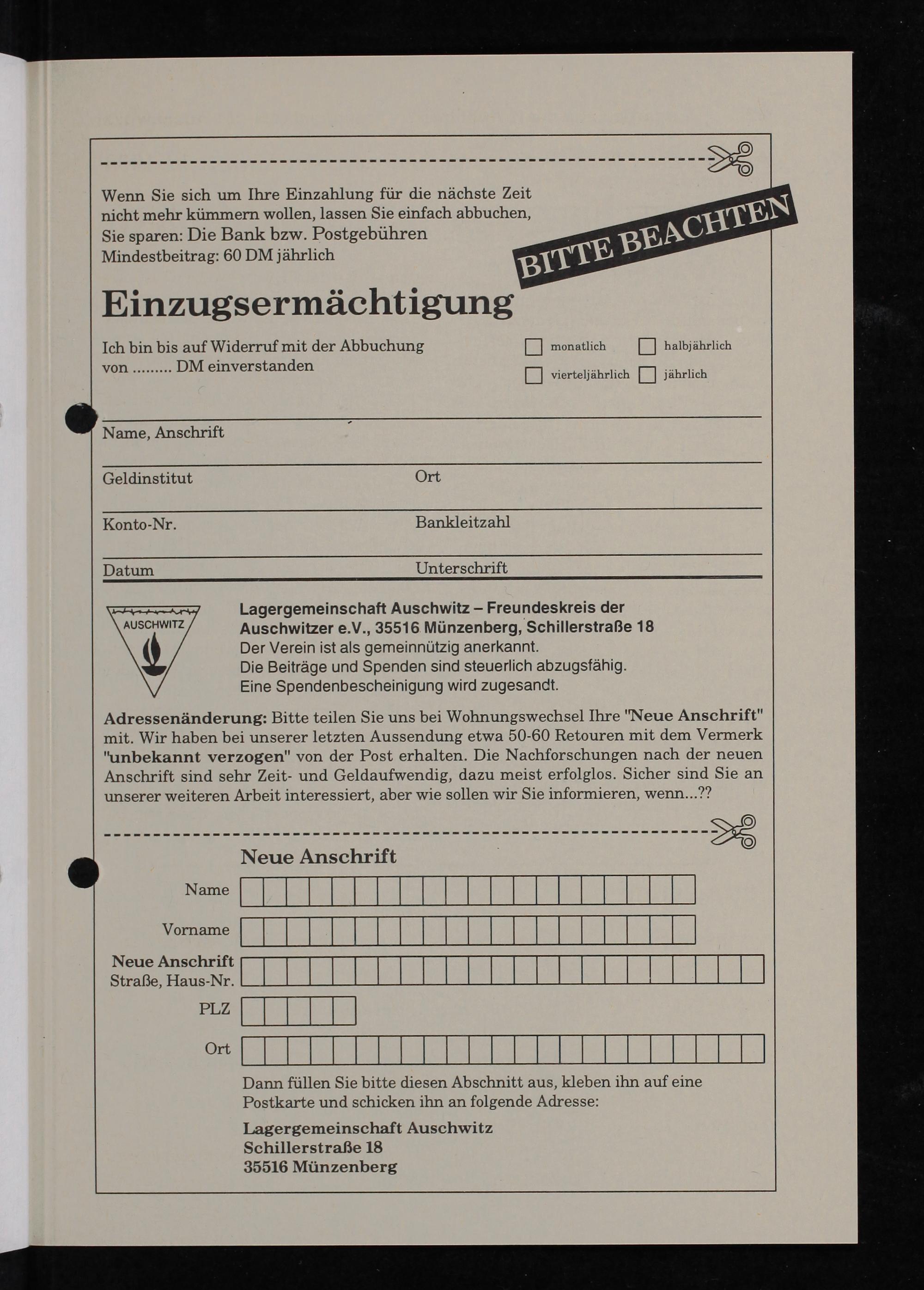 Auschwitzer e. V., 35516 Münzenberg, Schillerstraße 18 Der Verein ist als gemeinnũtzig anerkannt.