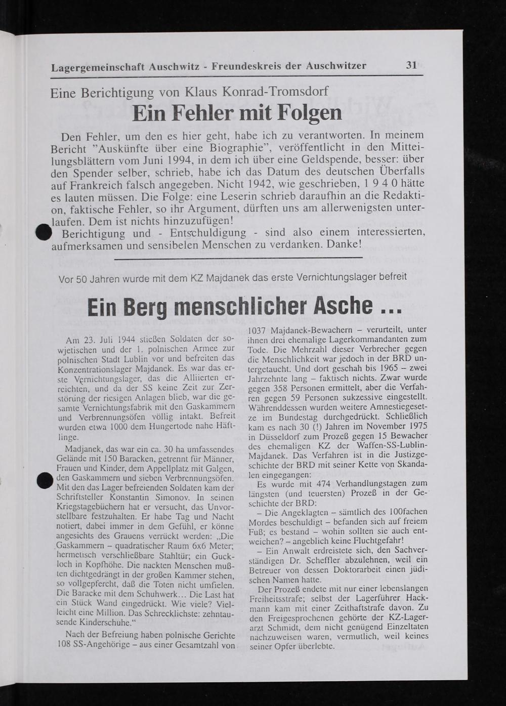 Lagergemeinschaft Auschwitz- Freundeskreis der Auschwitzer 31