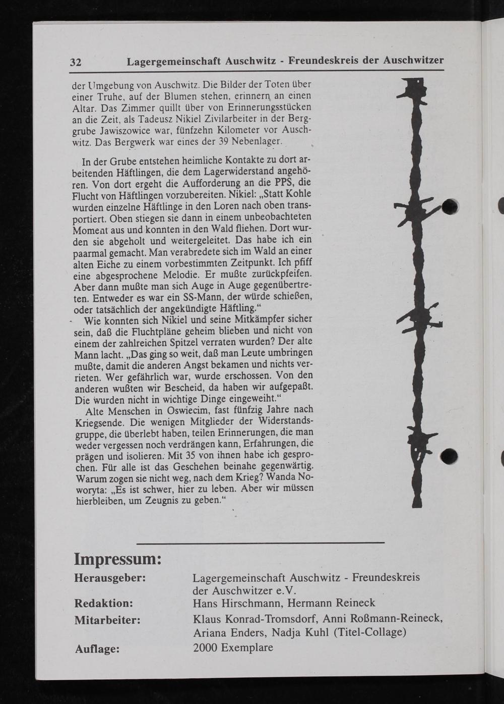 Impressum: Herausgeber: Lagergemeinschaft Auschwitz- Freundeskreis der Auschwitzer e. V. Redaktion: Hans Hirschmann, Hermann Reineck Mitarbeiter: Klaus Konrad-Tromsdorf, Anni Roßmann-Reineck,
