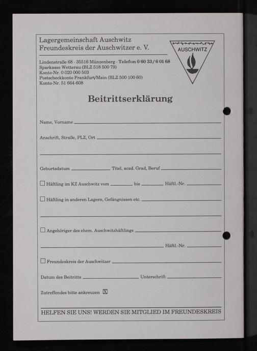 Postscheckkonto Frankfurt/ Main(BLZ 500 100 60)