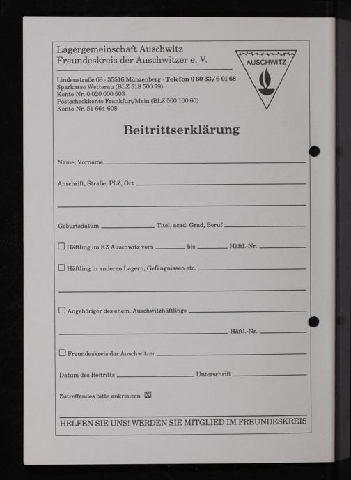 Lagergemeinschaft Auschwitz Freundeskreis der Auschwitzer e. V. aUscrMrrz