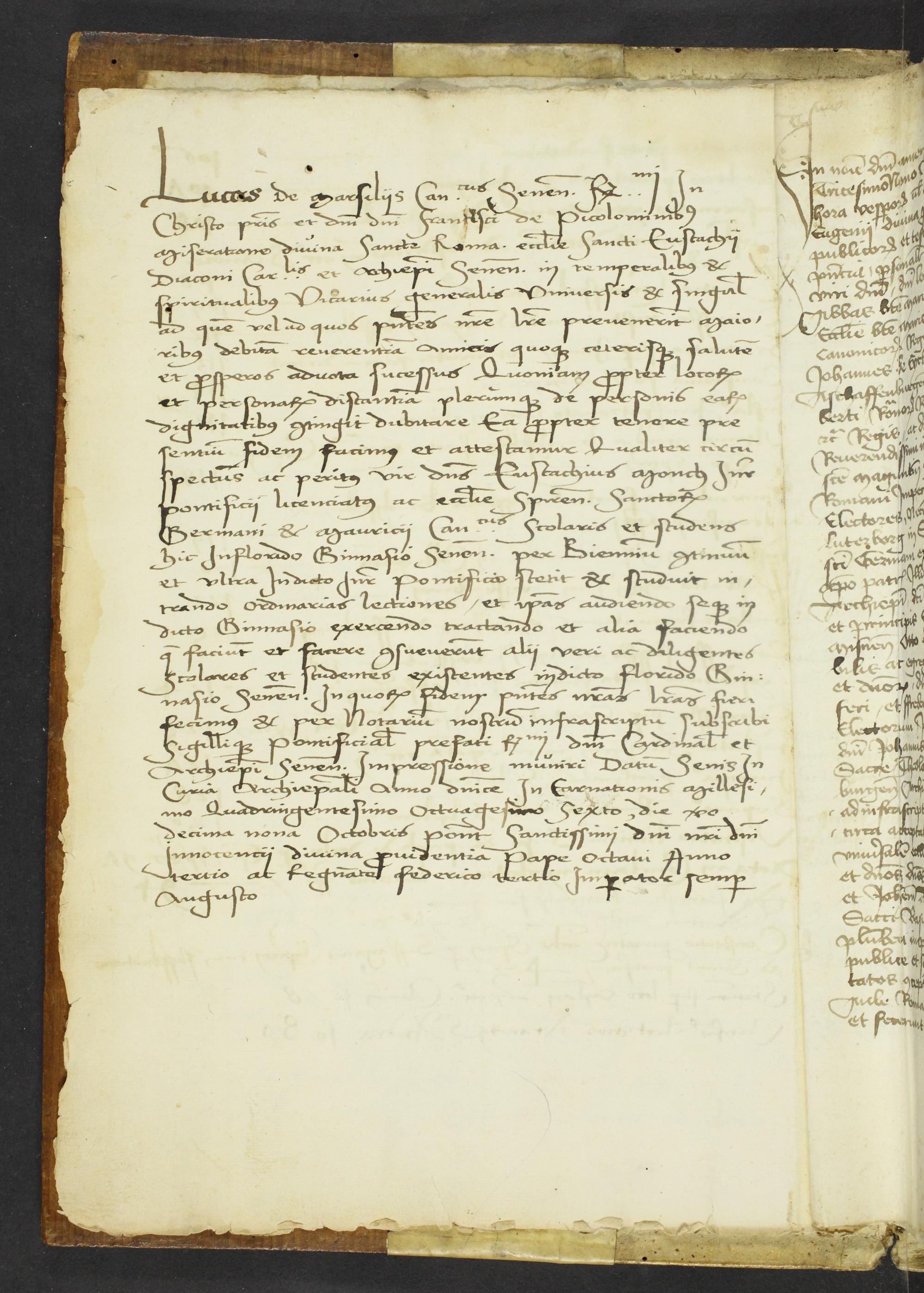 IIv Studienzeugnis für Eustachius Münch (19. Oktober 1486)