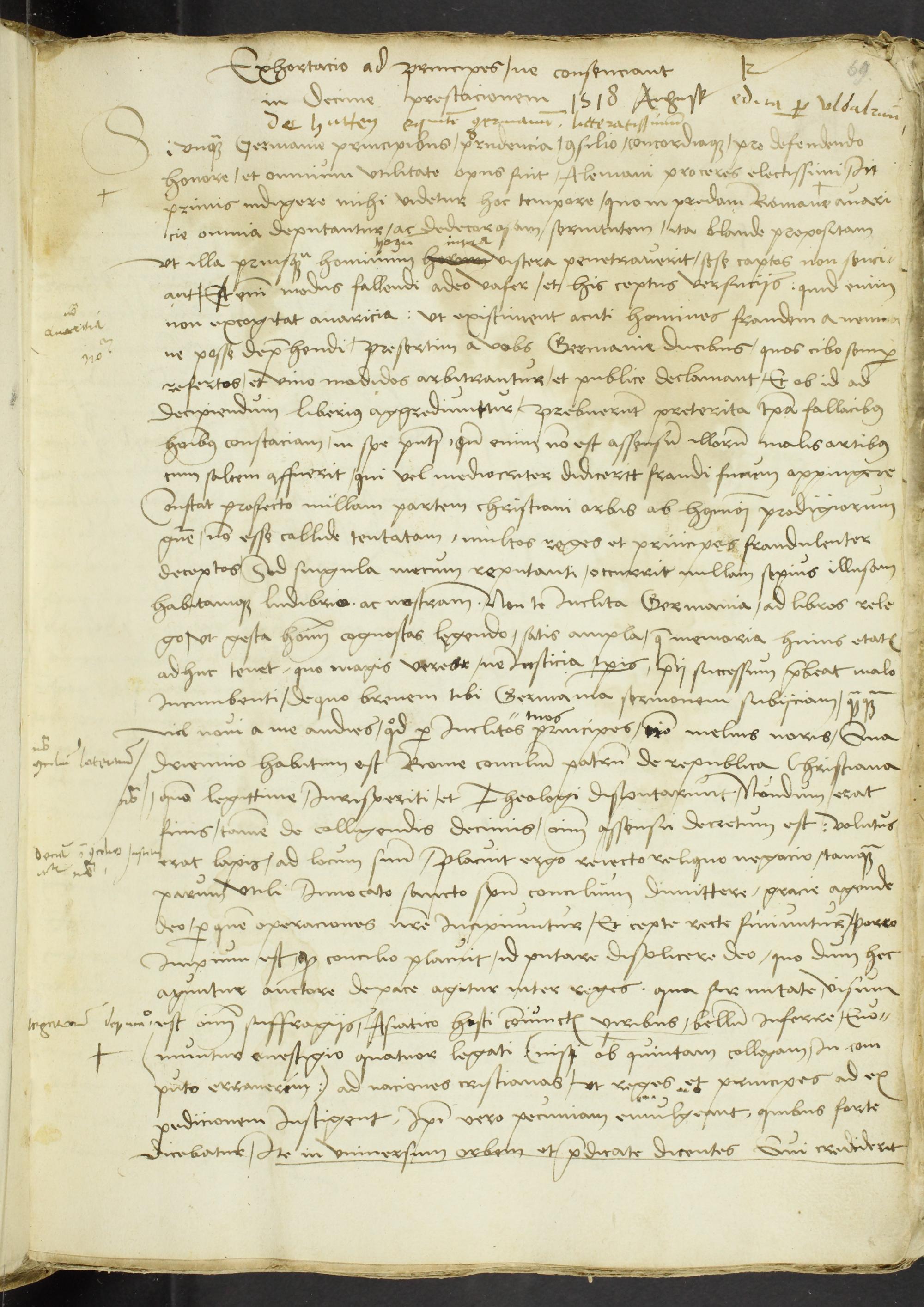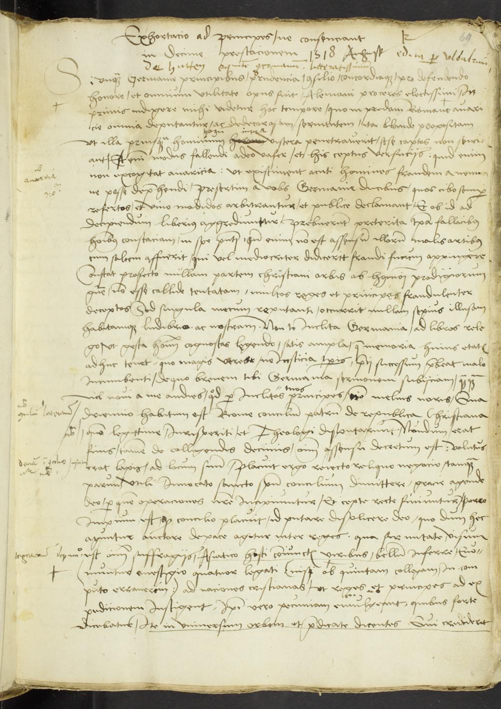 69r-71v Exhortatio ad principes, ne conveniant in decime prestacionem 1518 Augustae edita per Udalricum de Hutten equitem Germanicum litteratissimum