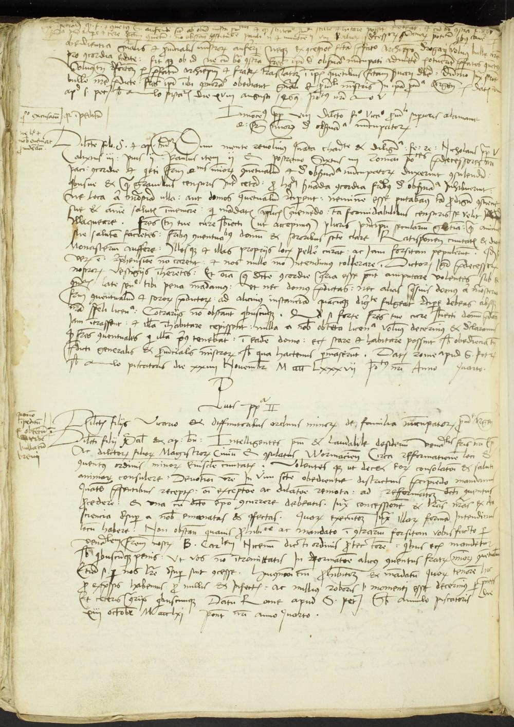 148v Breve Papst Pius II. an den Vikar und die Diffinitoren der Straßburger Minoritenprovinz wegen der Reform des Minoritenklosters in Worms (Rom 13. Oktober 1461)