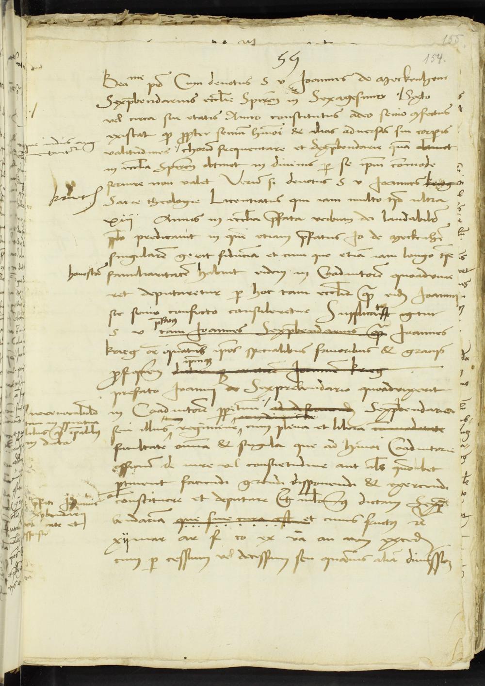 154r-154v Bruchstück der Supplik des Serpräbendars Johann von Meckenheim in Speier, den Lic. theol. Johann Kriech als Koadjutor in seiner Pfründe annehmen zu dürfen