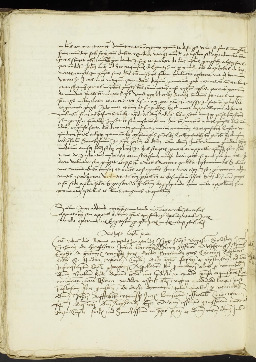 155r-155v Appelation des Stiftsdechants Nicolaus Rode und des Kapitels bei St. Andreas in Worms an den Papst gegen die Ansprüche des Klerikers Johann Lutz auf die Stiftsdechanei, welche im Vorjahre durch den Tod Konrad Mones von Kassel erledigt worden