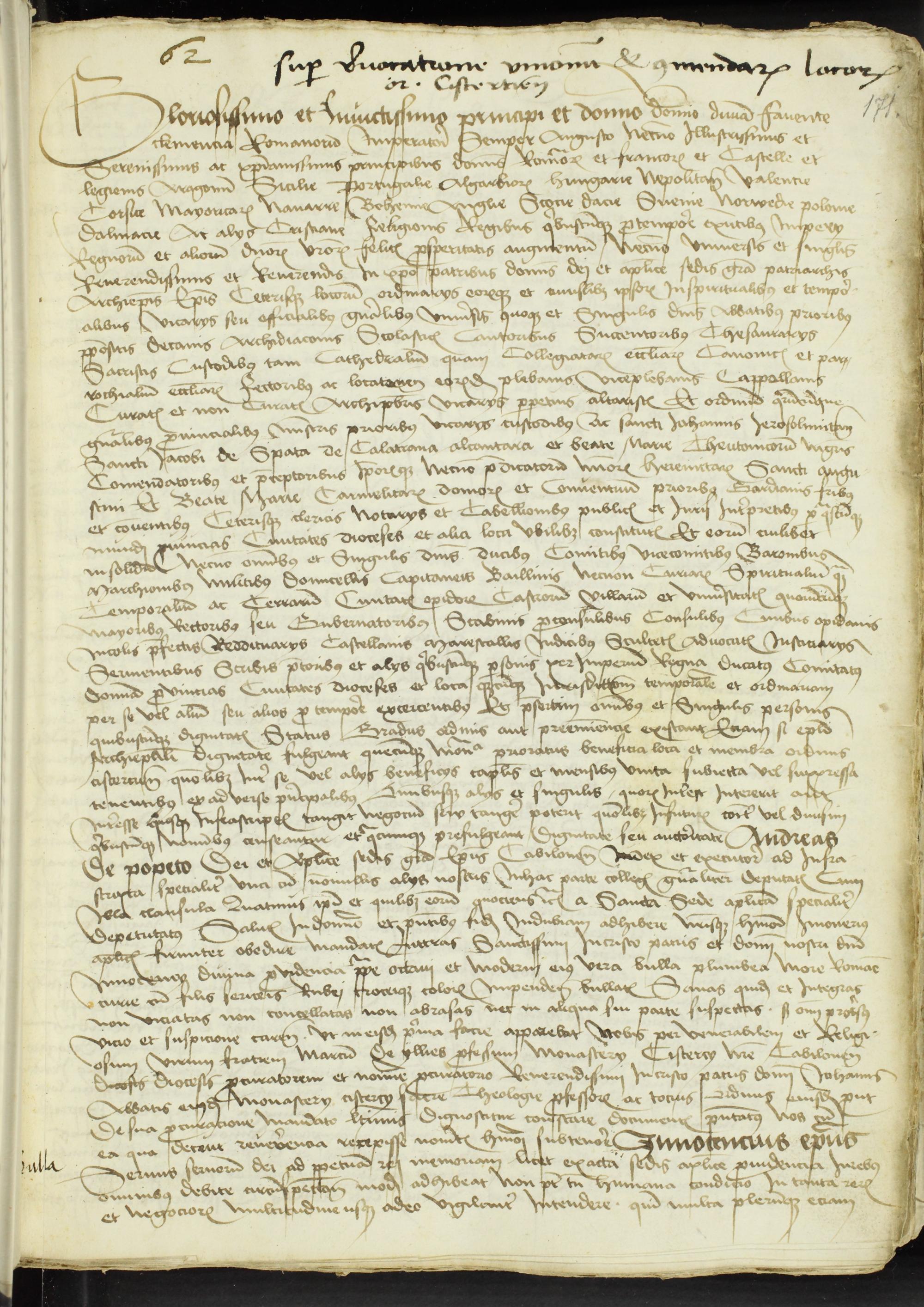 171r-175r Ausführungsurkunde des ep. Cabilonensis Andres de Papeto zur wörtlich eingerückten Bulle Innocenz VIII. Licet exacta sedis apostolice providencia (Rom Iden April 1489) datiert 4. Februar 1491