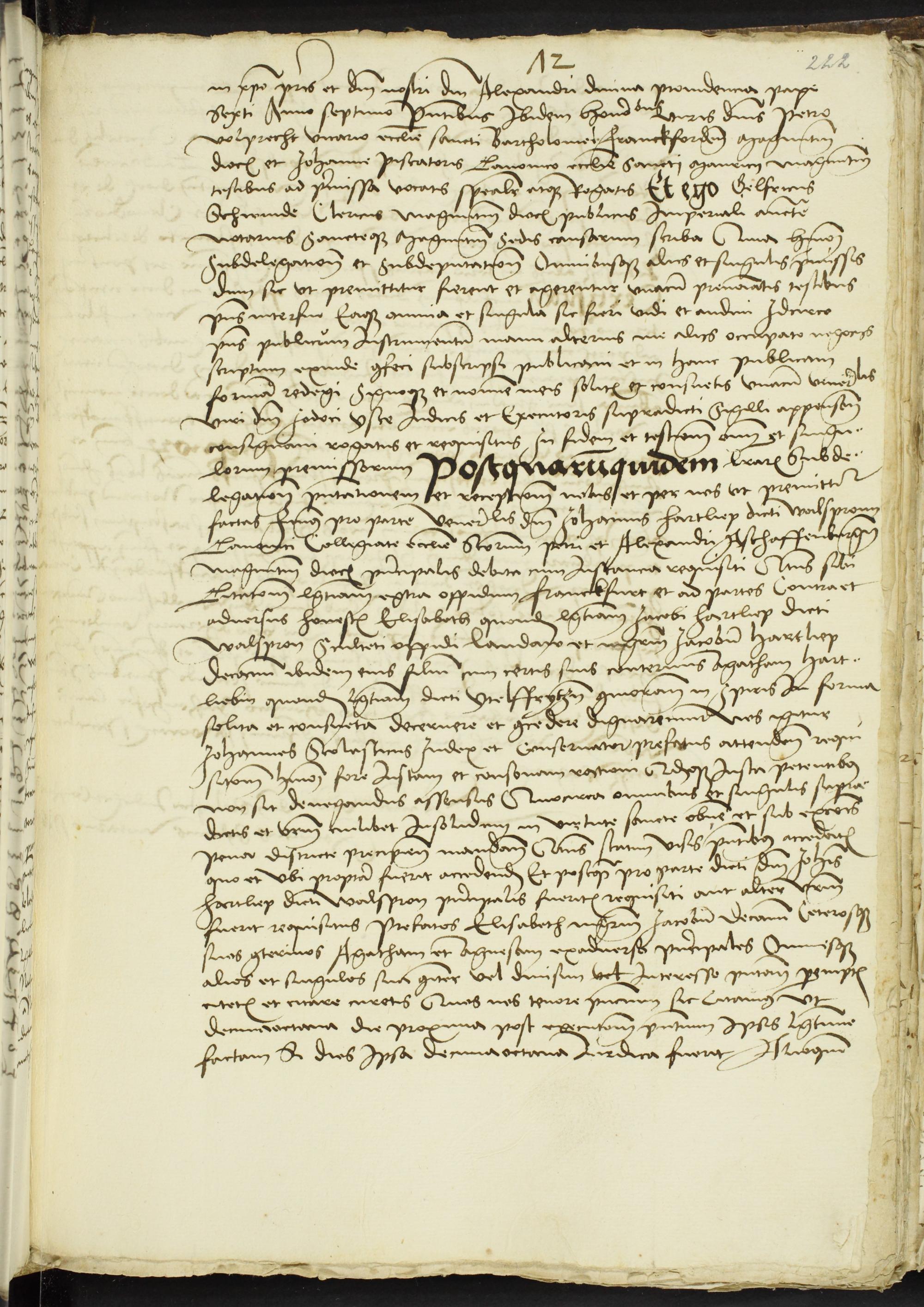 218r-222v Prozeß des Stiftsscholasters Johann Brune vom Liebfrauenberg bei Frankfurt als Subdelegierten des Stiftsdechants Johann Yste bei St. Gangolf in Mainz (11. Dezember 1504)