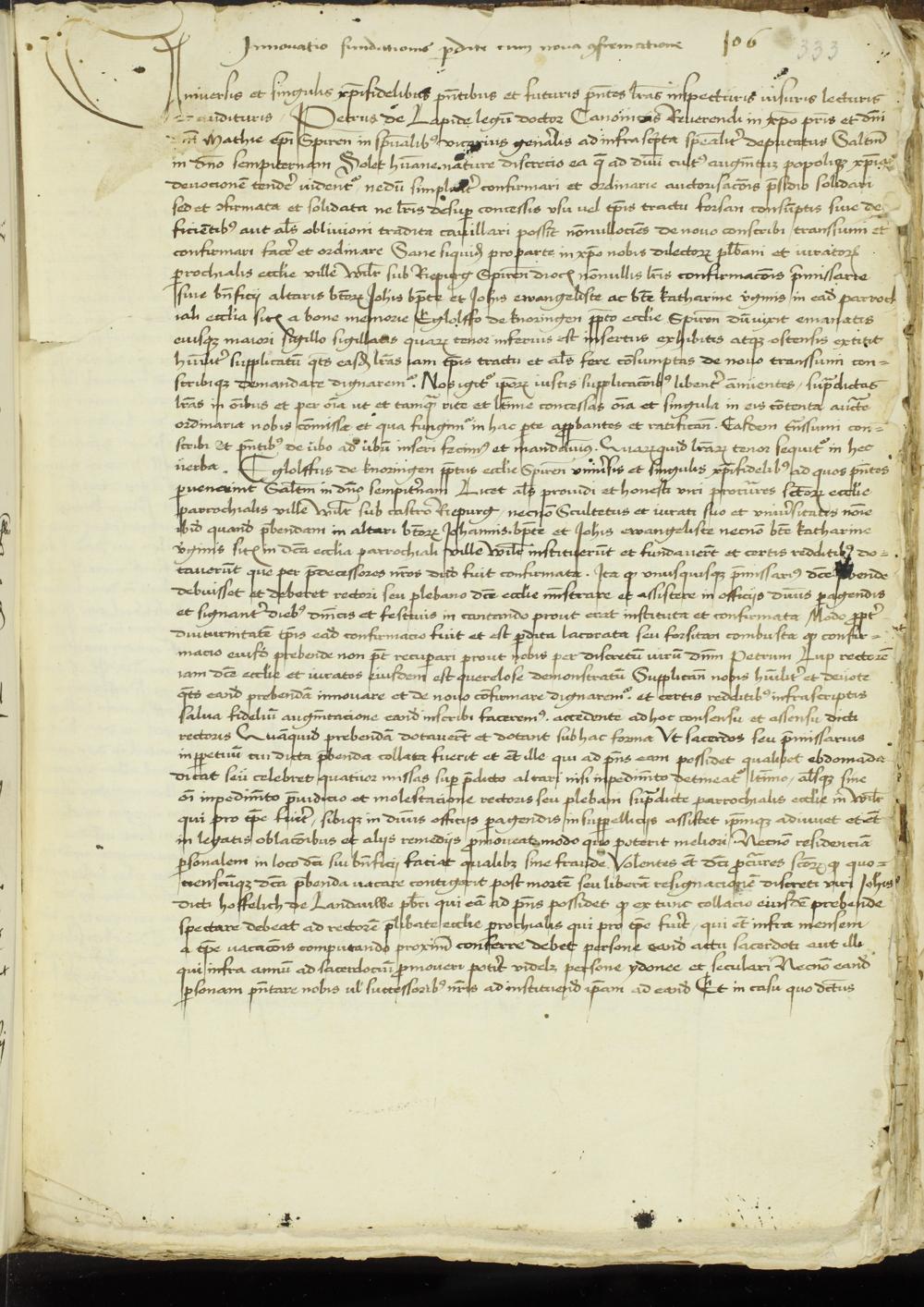 333r-334v Bidimus des Speierer Generalvikars Peter von Stein von der Neubestätigung der Frühmesse zu Weiher und R. durch den Speierer Dompropst Eglolf von Knöringen (Samstag nach Margaretha 1469)