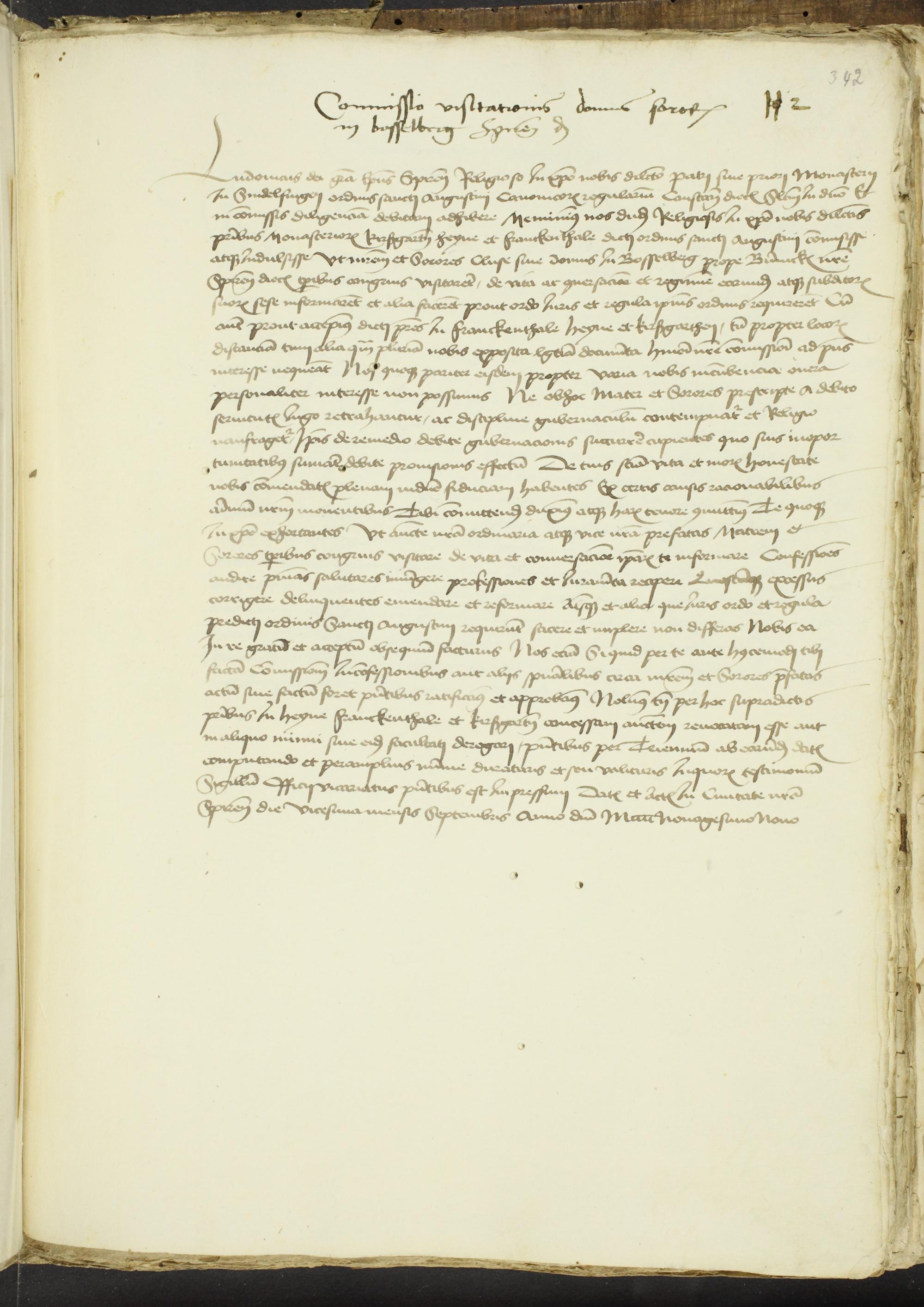 342r Auftrag des Speierer Bischofs Ludwig an den Augustiner Prior zu Sindelfingen zur Visitation der Schwesterklause zu Boßelberg bei Bönnigheim (Speier 20. September 1499)