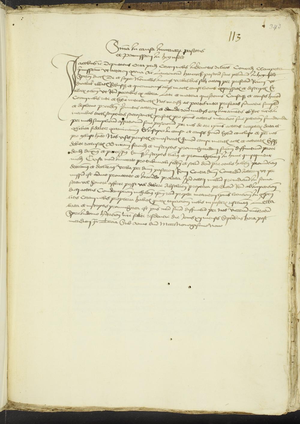 343r Urteil des Speierer Generalvikars Jakob von Gotßheim in der Beleidigungsklage des Frühmessers Conrad Cleinpeter zu Heunfelt gegen Lorenz Hauwck in Heunfelt (12. September 1499)