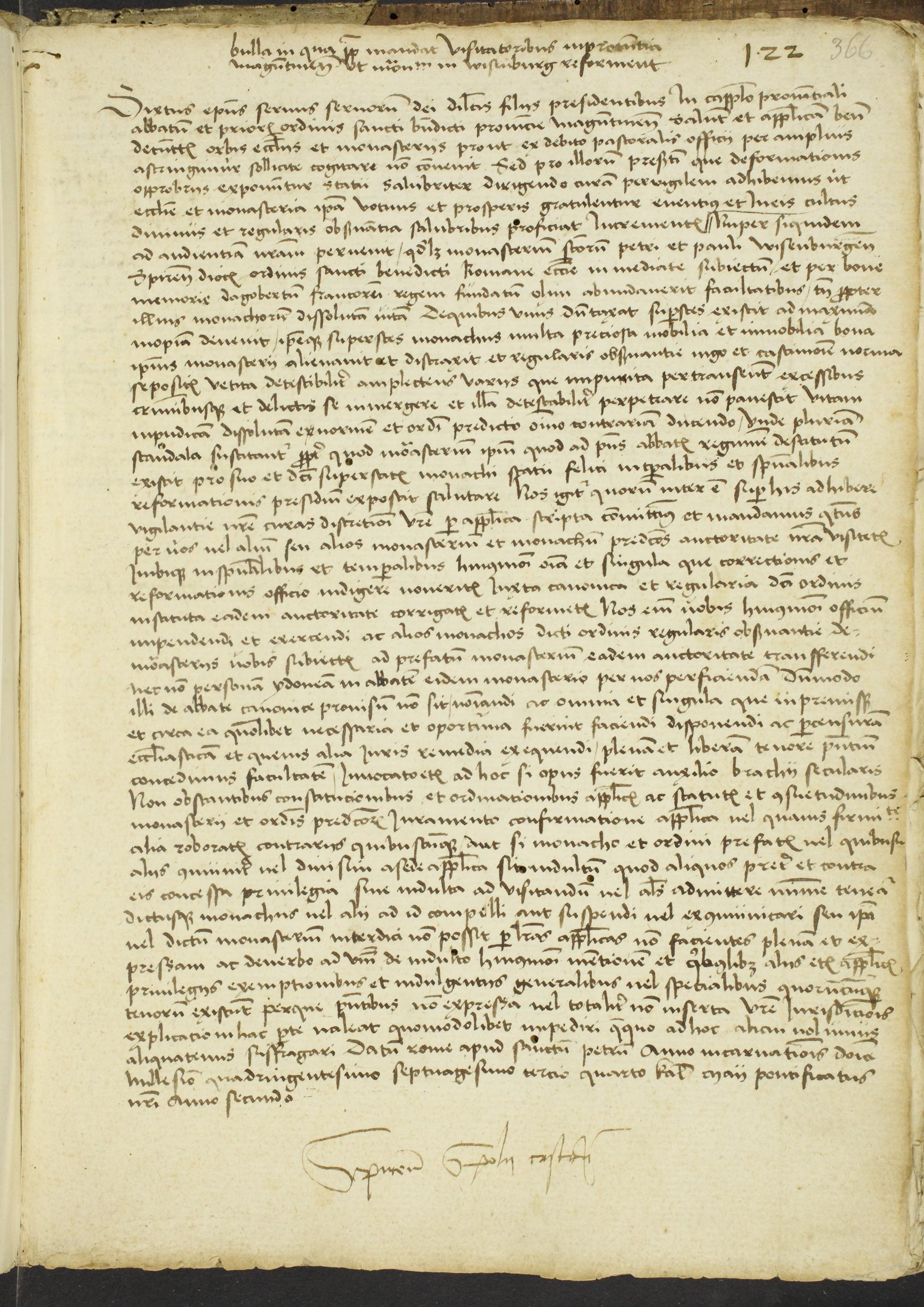 366r-366v Bulle Sirtus VI. De cunctis orbis ecclesiis (Rom Iden Juli 1473)
