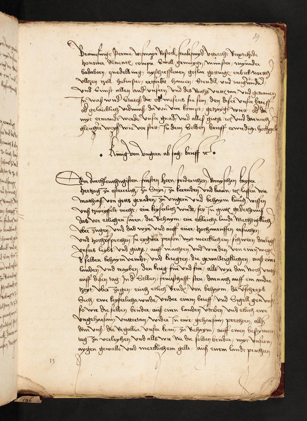 19r-20v Matthias Corvinus, König von Ungarn: Absagebrief an Friedrich III. (Ofen, 1477 Juni 12)