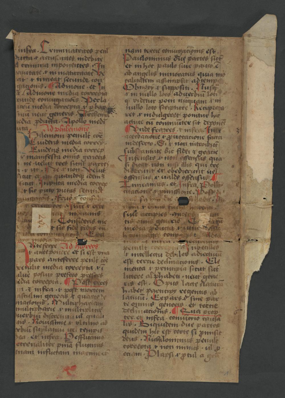 UB Gießen, Hs NF 698 - [Sprachliche Erklärungen zum Neuen Testament (Philemon, Hebräer) – Fragment]. - UB Gießen, Hs NF 698