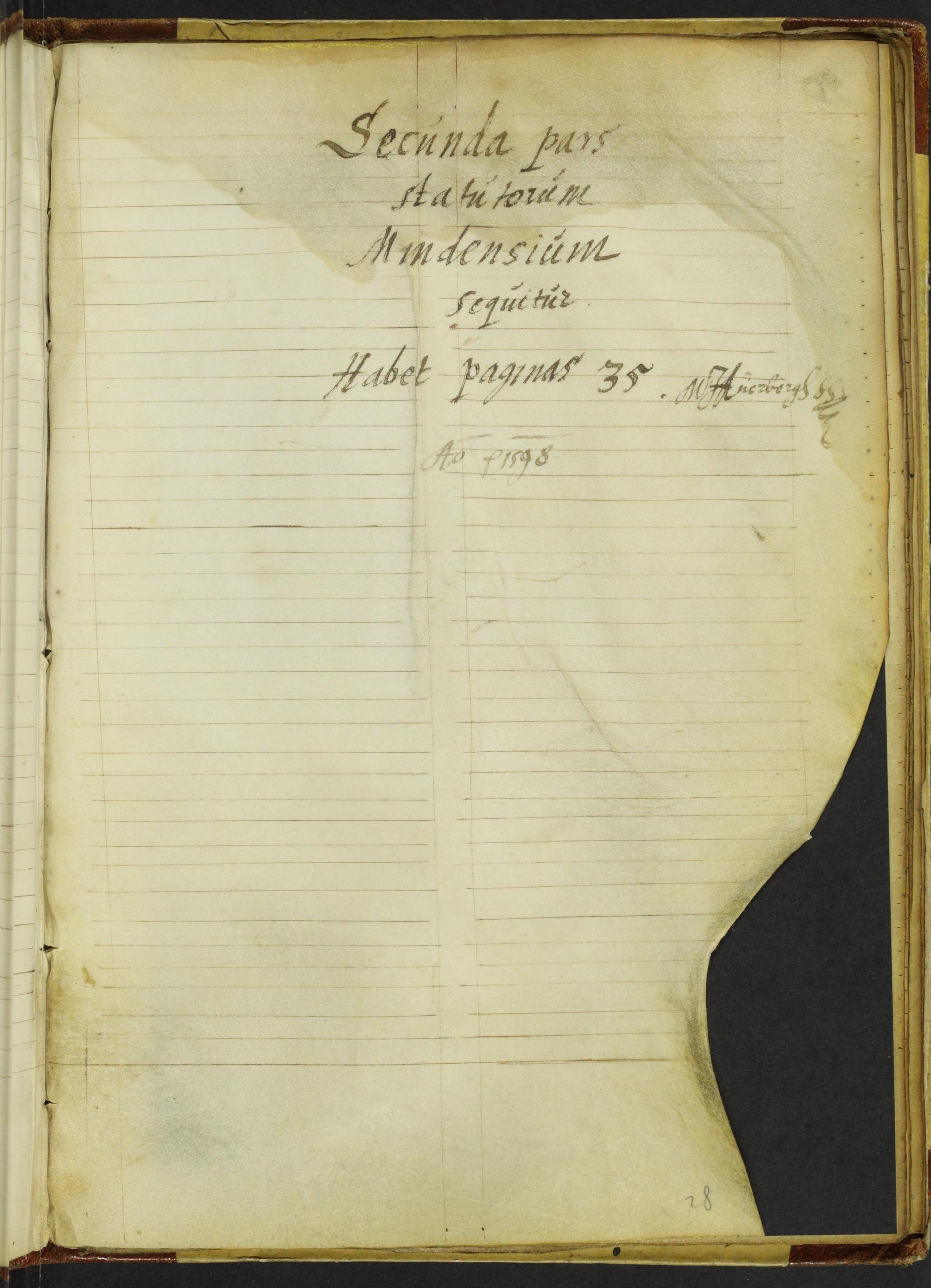 28r Secunda pars statuorum Mindensium sequitur. Habet paginas 35.