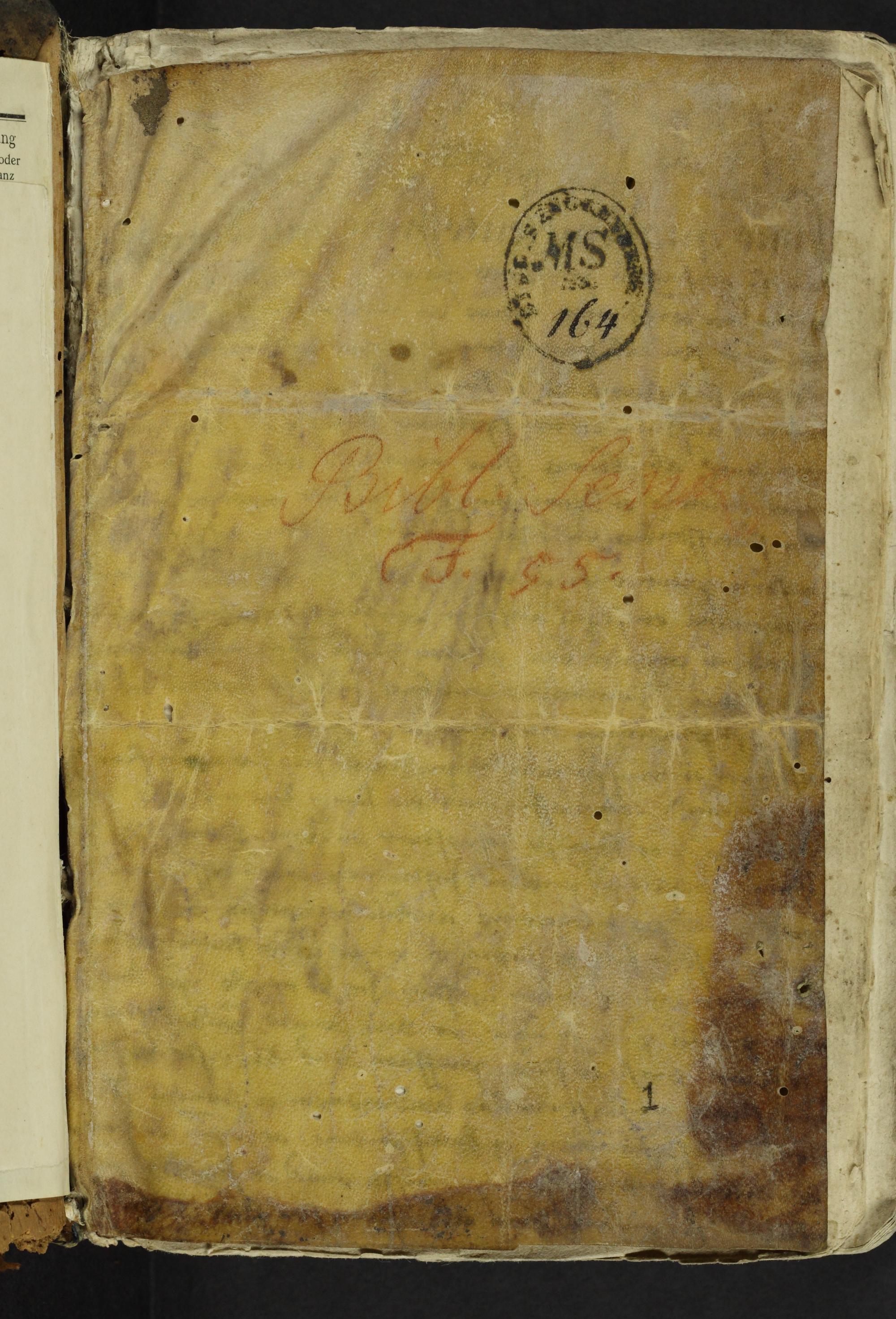 1r-1v Vorsatz, abgelöster Spiegel (Pergament, Urkundenfragment)