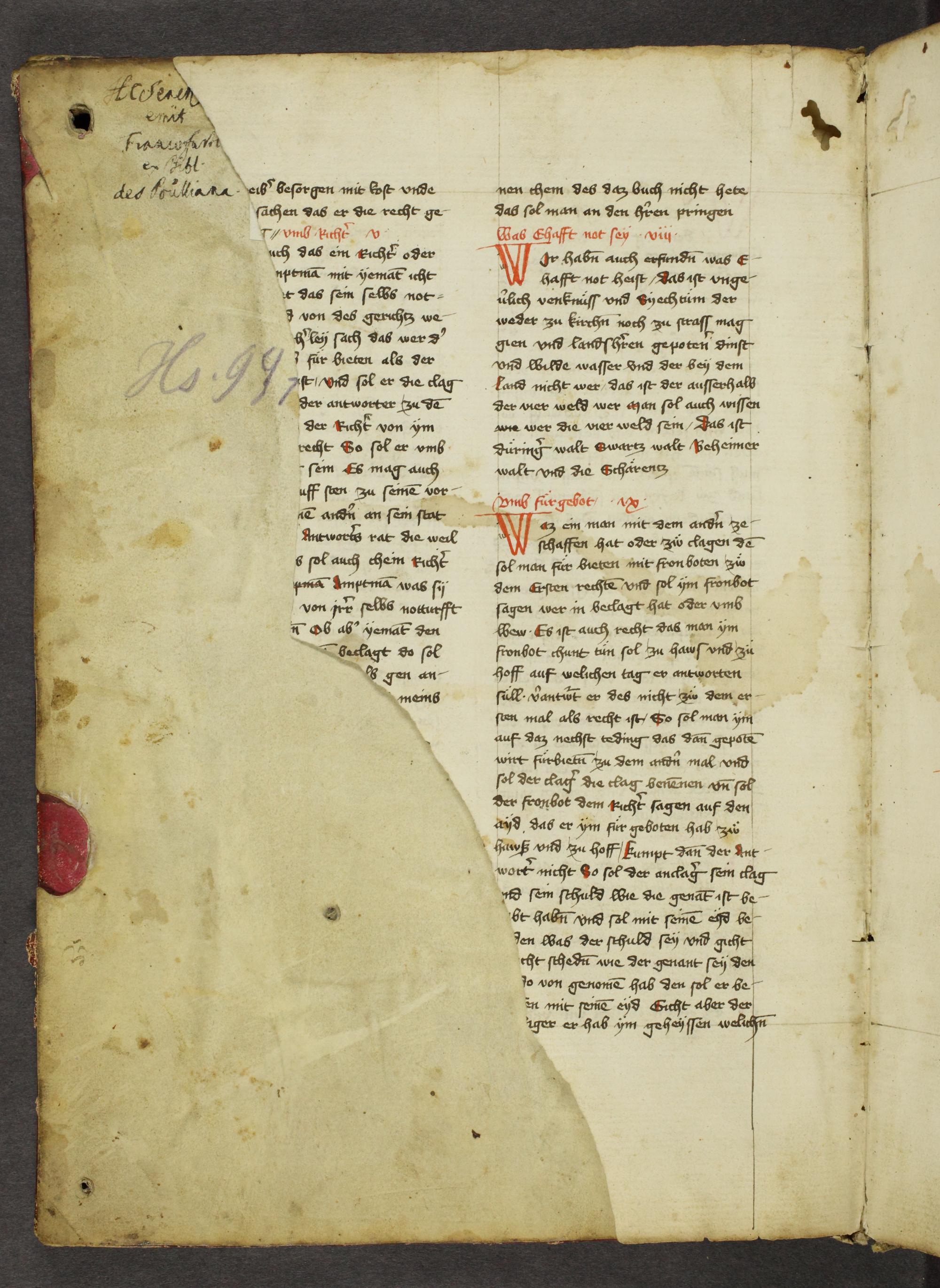 UB Gießen, Hs 997 - Oberbayerisches Landrecht (Kaiser Ludwigs Rechtbuch). - UB Gießen, Hs 997