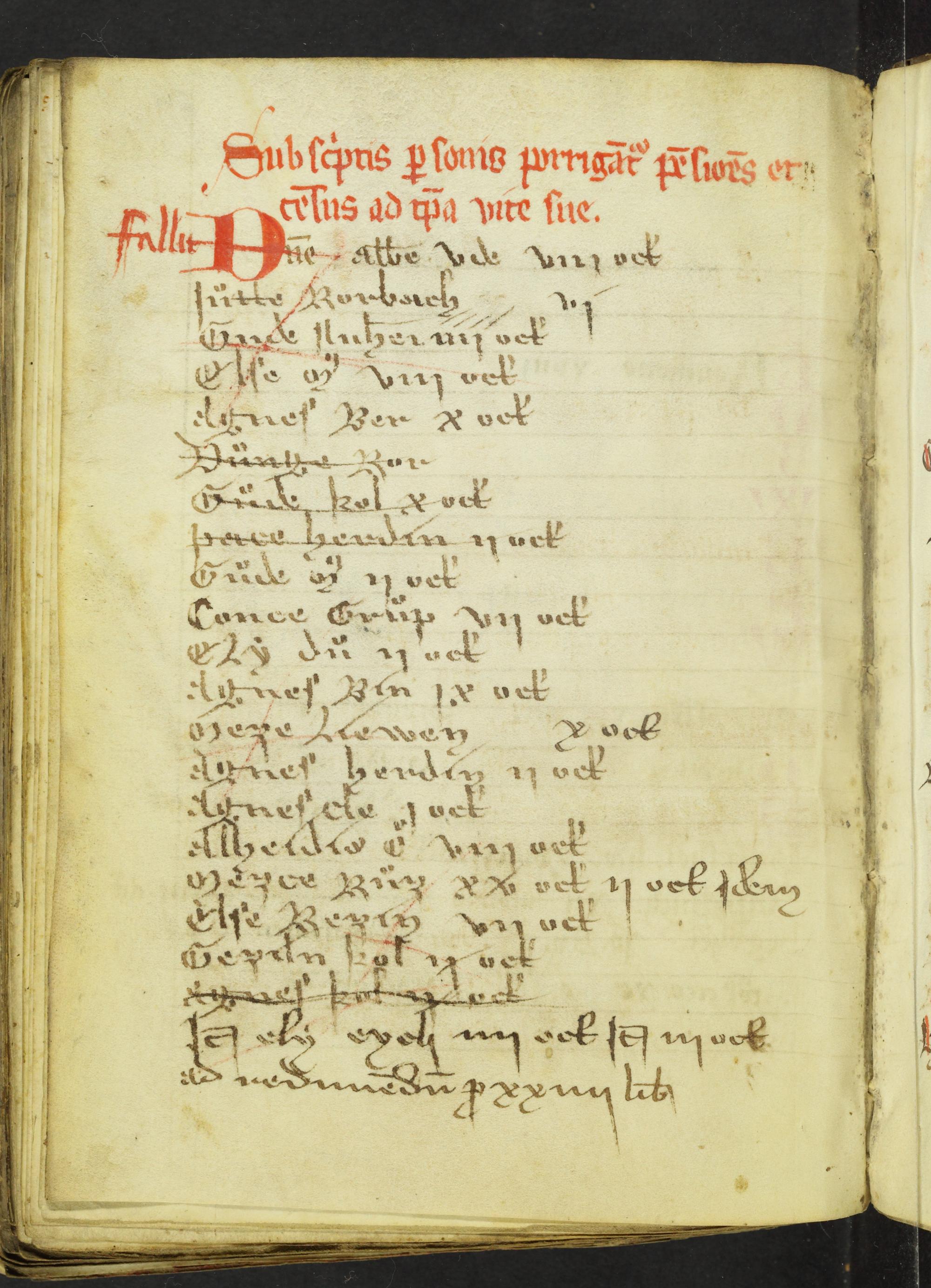 69v Namen der ersten Liste ausradiert und gestrichen, dafür auf den Folgeseiten von späterer Hand neu aufgeschrieben