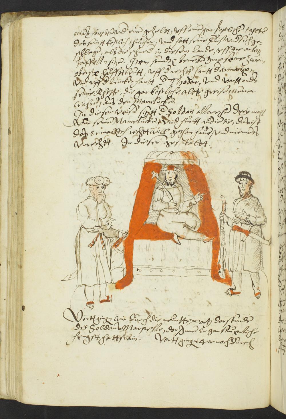 60v Illustration: Sultan von Kairo mit zwei Leibwächtern