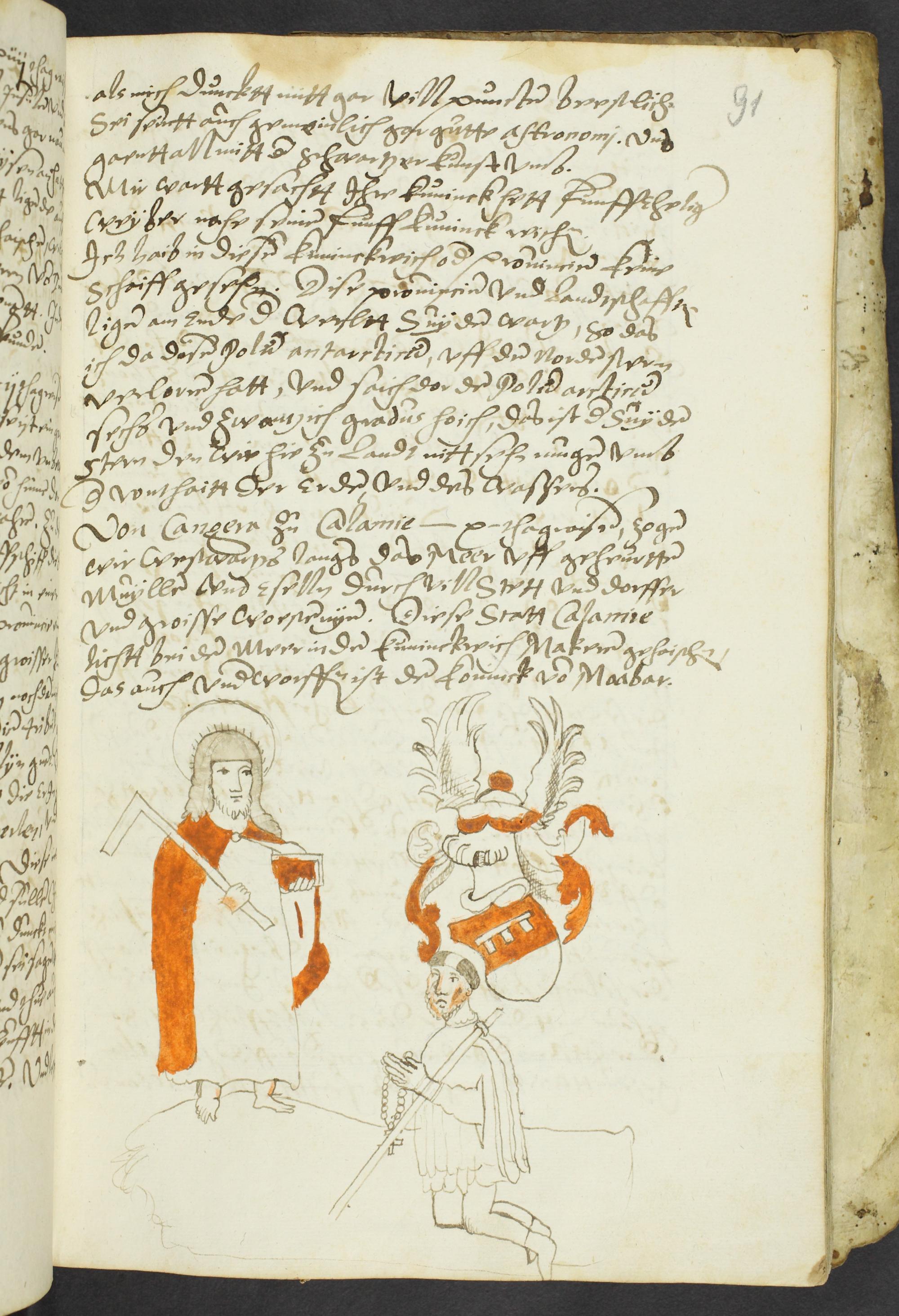 91r Illustration: Arnold von Harff vor dem hl. Thomas