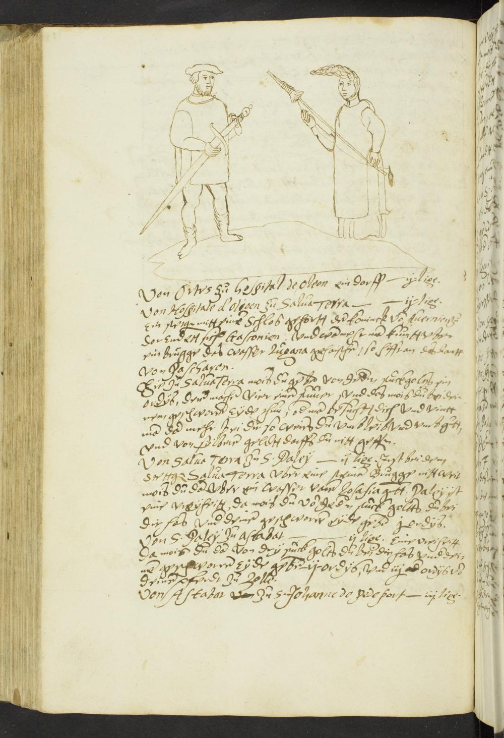 138v Illustration: Mann mit Langschwert und Frau mit Spindel (Gascognier)