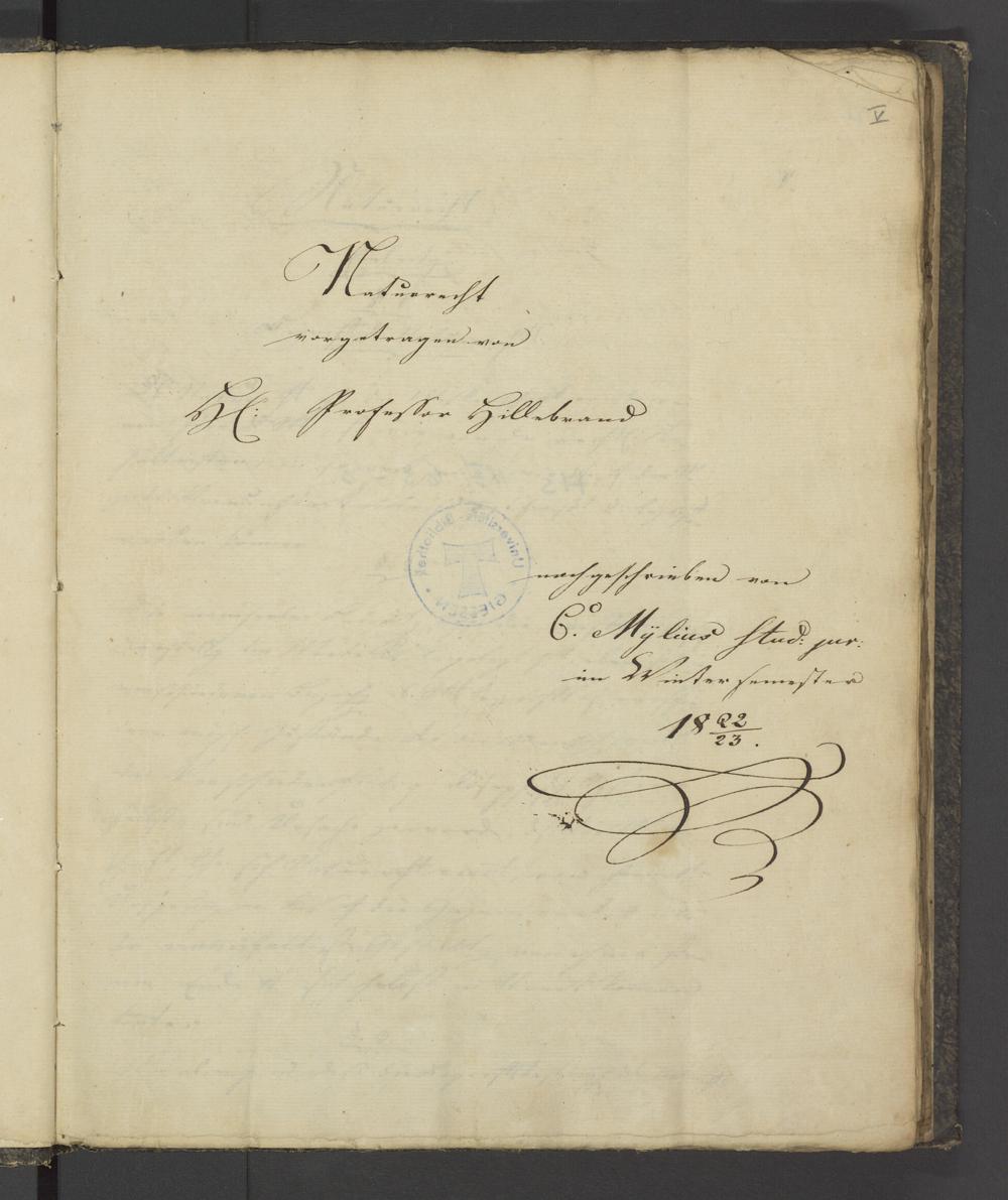 UB Gießen, Hs NF 63-3 - Naturrecht - UB Gießen, Hs NF 63-3 : [Kollegienheft] / vorgetragen von dem Pädagogiarchen Prof. Dr. Hillebrand ; von C. Mylius stud. jur.