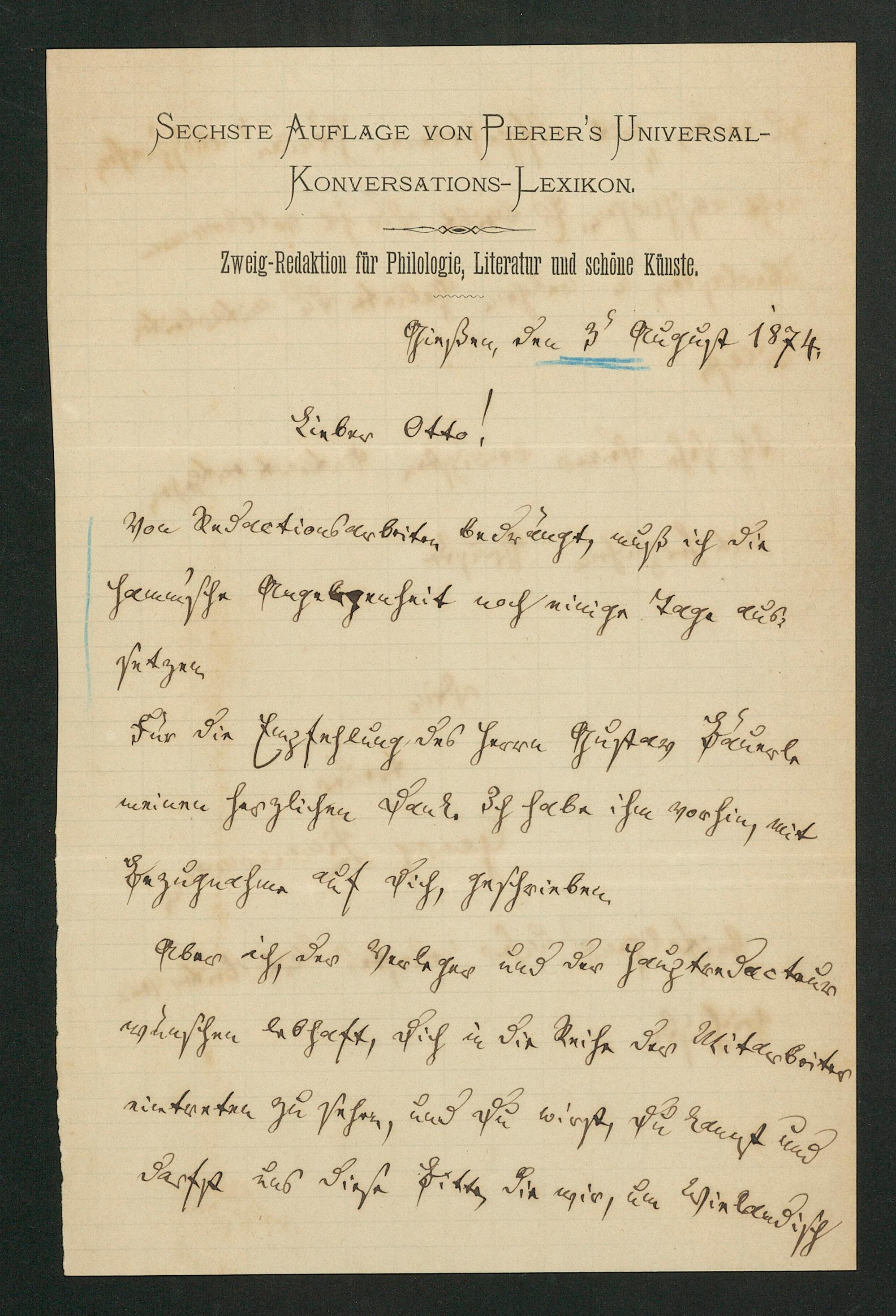 UB Gießen, Hs NF 796-3 - [Ein eigenhändiger Brief mit Unterschrift an Otto Müller] - Hs NF 796-3