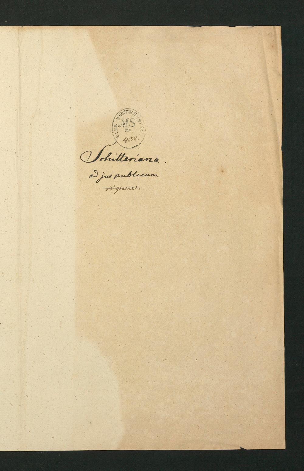 UB Gießen, Hs 920-1 - Schilteriana, ad Jus Publicum Saxonicum - UB Gießen, Hs 920-1 / Johann Schilter