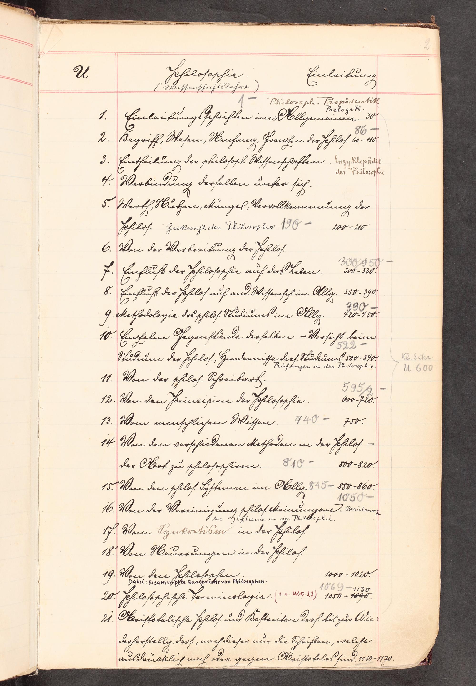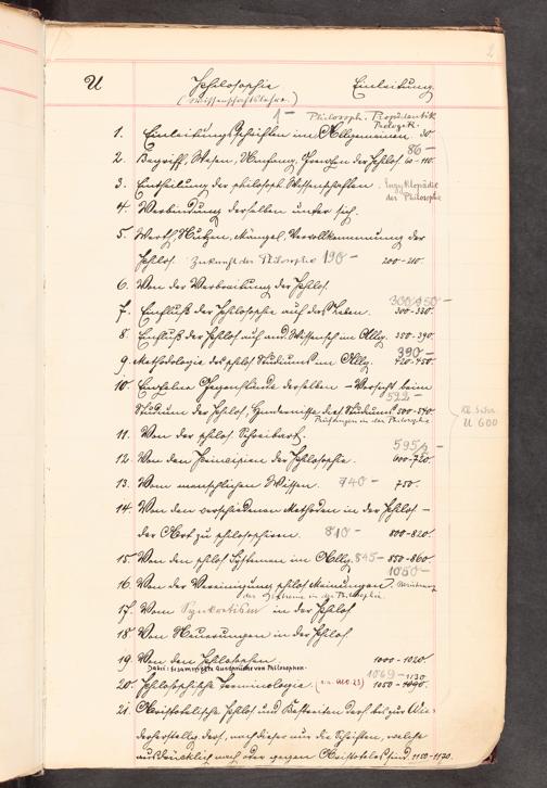 UB Gießen, Hs NF 140 - Schematismus des Systematischen Katalogs der Universitätsbibliothek Gießen nach dem "Bibliographischen System der gesamten Wissenschaftskunde " von A.A.E. Schleiermacher in Gebrauch von ca. 1825 bis 1949 in dem Grundstock von der Hand J.Val. Adrians - UB Gießen, Hs NF 140