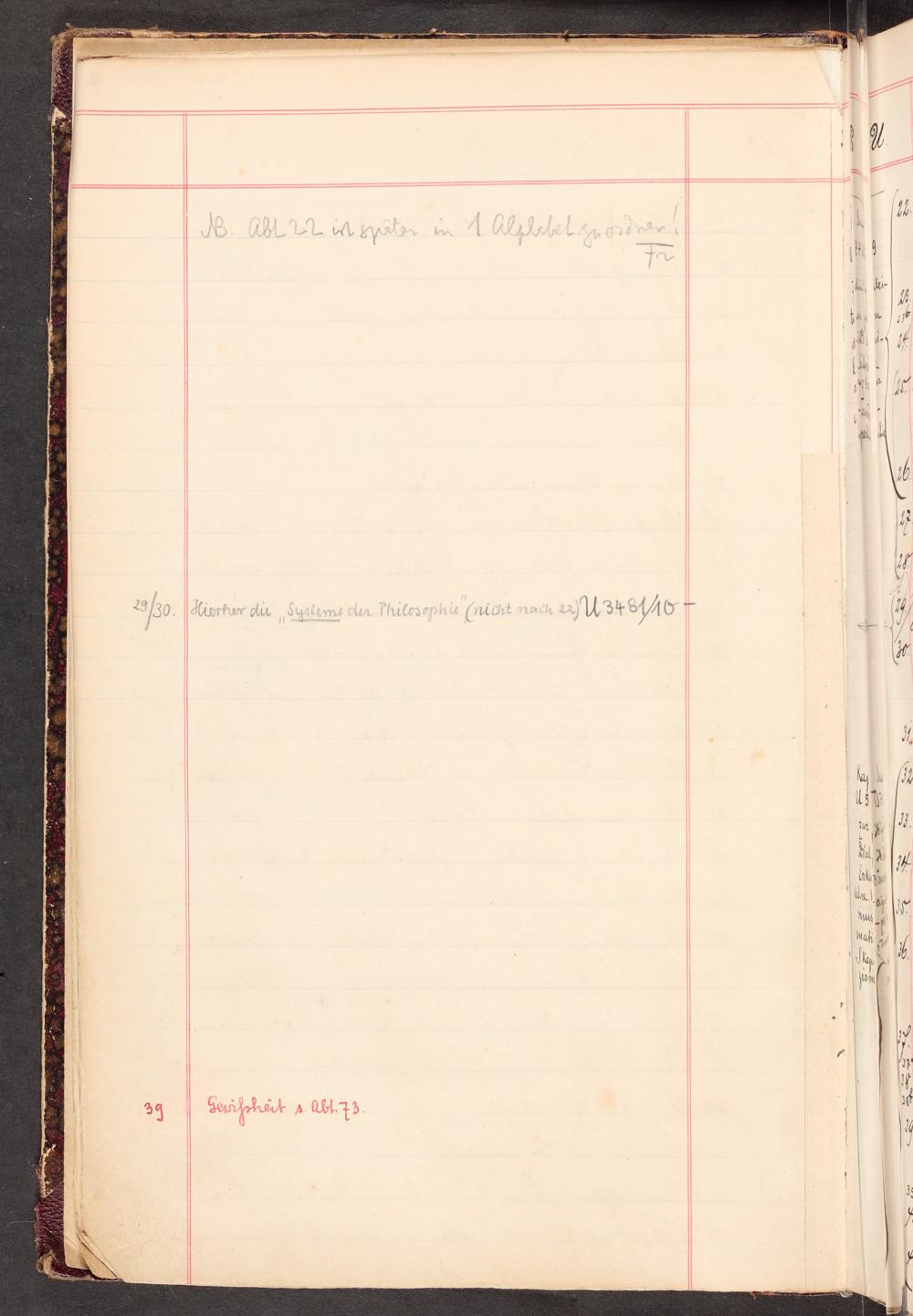 UB Gießen, Hs NF 140 - Schematismus des Systematischen Katalogs der Universitätsbibliothek Gießen nach dem "Bibliographischen System der gesamten Wissenschaftskunde " von A.A.E. Schleiermacher in Gebrauch von ca. 1825 bis 1949 in dem Grundstock von der Hand J.Val. Adrians - UB Gießen, Hs NF 140