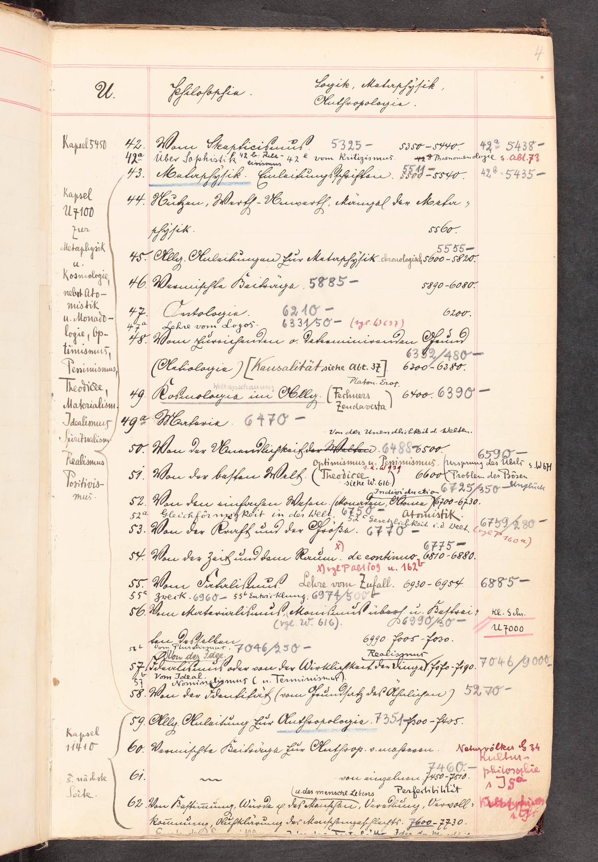 UB Gießen, Hs NF 140 - Schematismus des Systematischen Katalogs der Universitätsbibliothek Gießen nach dem "Bibliographischen System der gesamten Wissenschaftskunde " von A.A.E. Schleiermacher in Gebrauch von ca. 1825 bis 1949 in dem Grundstock von der Hand J.Val. Adrians - UB Gießen, Hs NF 140