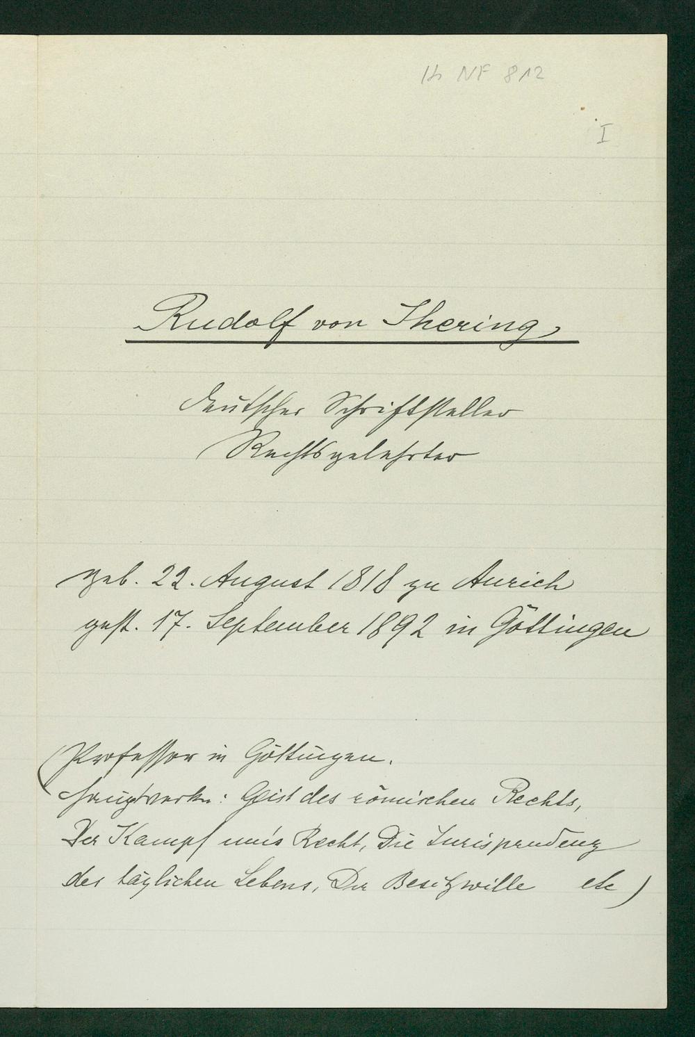 UB Gießen, Hs NF 812 - Brief von Rudolf von Jhering an Unbekannt. - UB Gießen, Hs NF 812