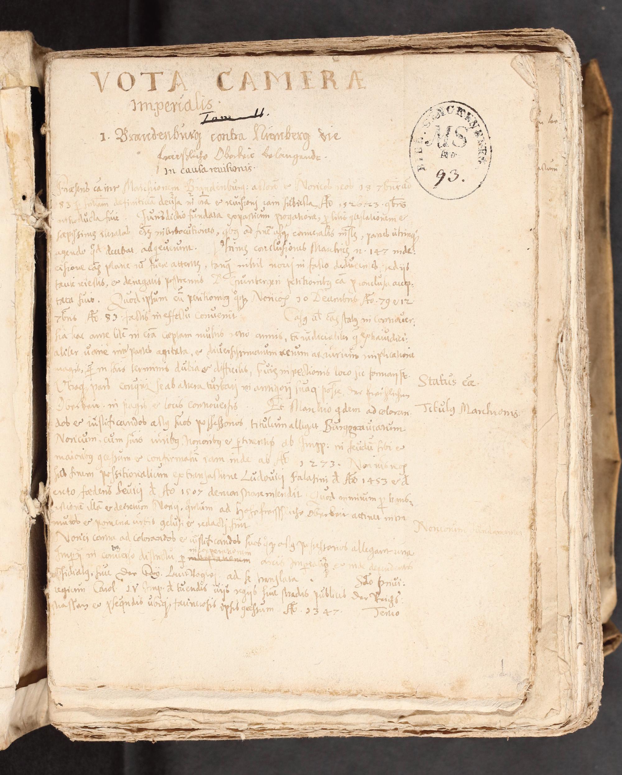 UB Gießen, Hs 1135 - Vota et Dubia Cameralia tam circa Processum quam varias Imperii Constitutiones, Causas item fiscales exemptionum et judicii provincialis in Suevia. - UB Gießen, Hs 1135