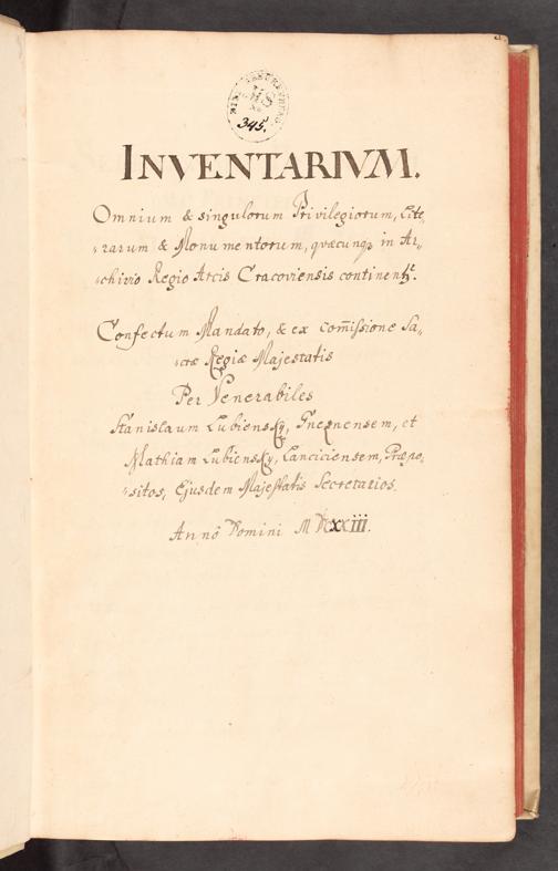 UB Gießen, Hs 591 - Inventarium omnium et singulorum Privilegiorum, Literarum et Monumentorum, quaecunque in Archivio Regio Arcis Cracoviensis continentur. Confectum mandato et ex commissione Sacrae Regiae Maiestatis per venerabilis Stanislaum Lubiensky et Matthiam Lubiensky, Lanciciensem (?), Praepositos, ejusdem Maiestatis Secretarios. - UB Gießen, Hs 591 : [Inventar des königlichen Archivs der Stadt/Burg Krakau]