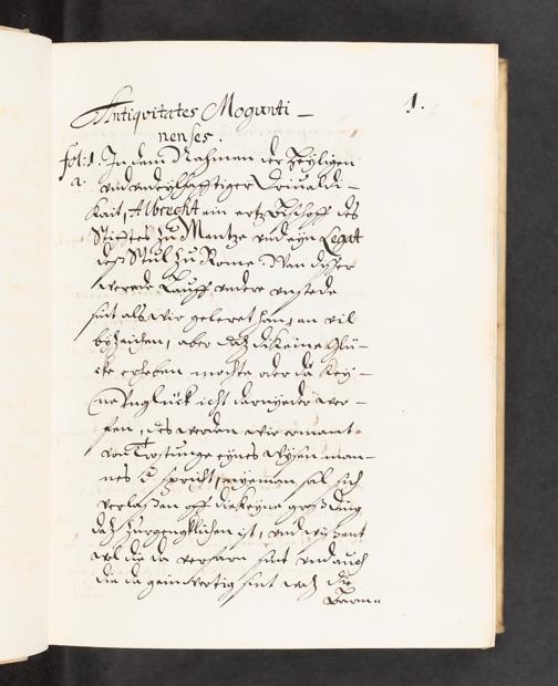 UB Gießen, Hs 499 - Antiquitates sive Chronicon Moguntinense vetus insertis diplomatibus et aliis monumentis quamplurimis. [I.]. - UB Gießen, Hs 499