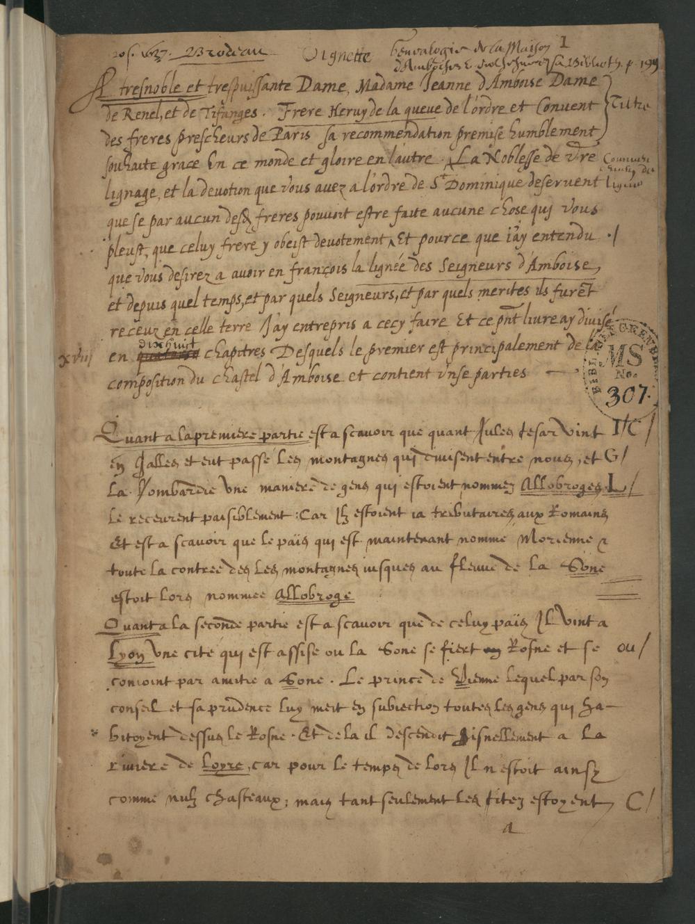 UB Gießen, Hs 271 - Frere Heruy de la queue, de l’ordre et convent des freres prescheurs de Paris, Généalogie de la Maison d‘Amboise. - UB Gießen, Hs 271