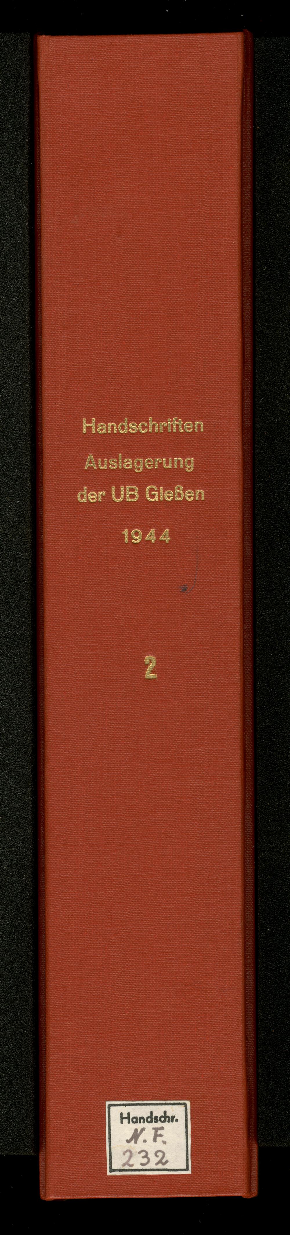 UB Gießen, Hs NF 232 - Verzeichnis der Handschriften der Universitätsbibliothek Gießen 1944. - UB Gießen, Hs NF 232