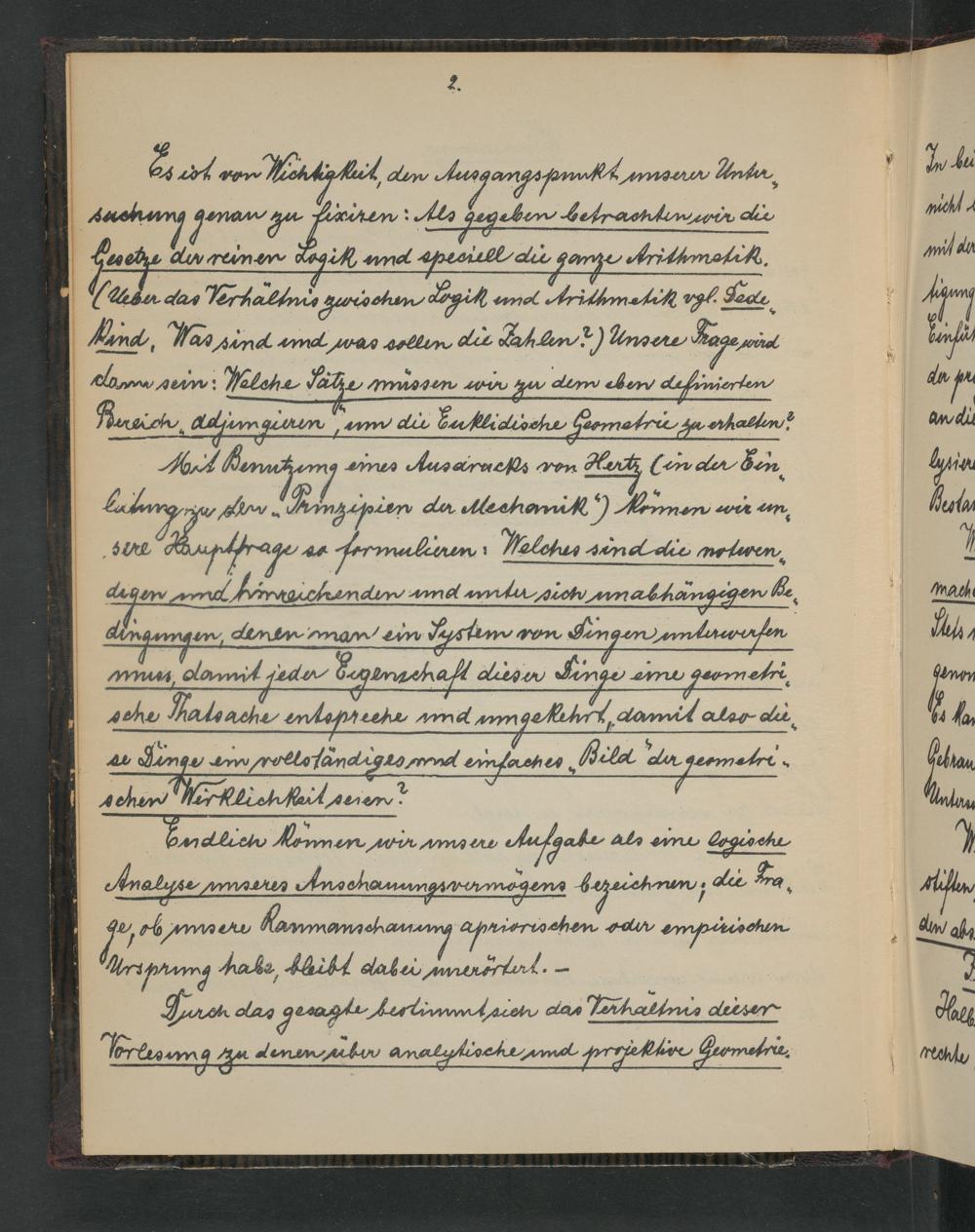 UB Gießen, Hs NF 705 - Elemente der Euklidischen Geometrie. - UB Gießen, Hs NF 705 : Vorlesungsnachschrift (Autographie) von Hans von Schaper, Göttingen, Wintersemester 1898/99