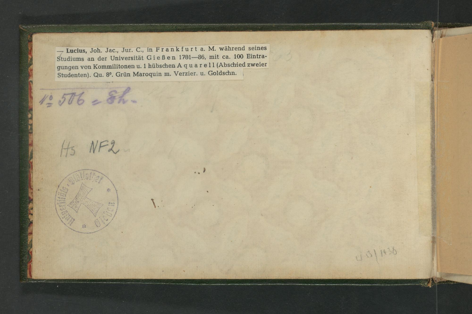 UB Gießen, Hs NF 2 - Stammbuch des Jurastudenten Johann Jacob Lucius, Jur. C. in Frankfurt am Main, während seines Studiums in Gießen. 1781-1786. - UB Gießen, Hs NF 2