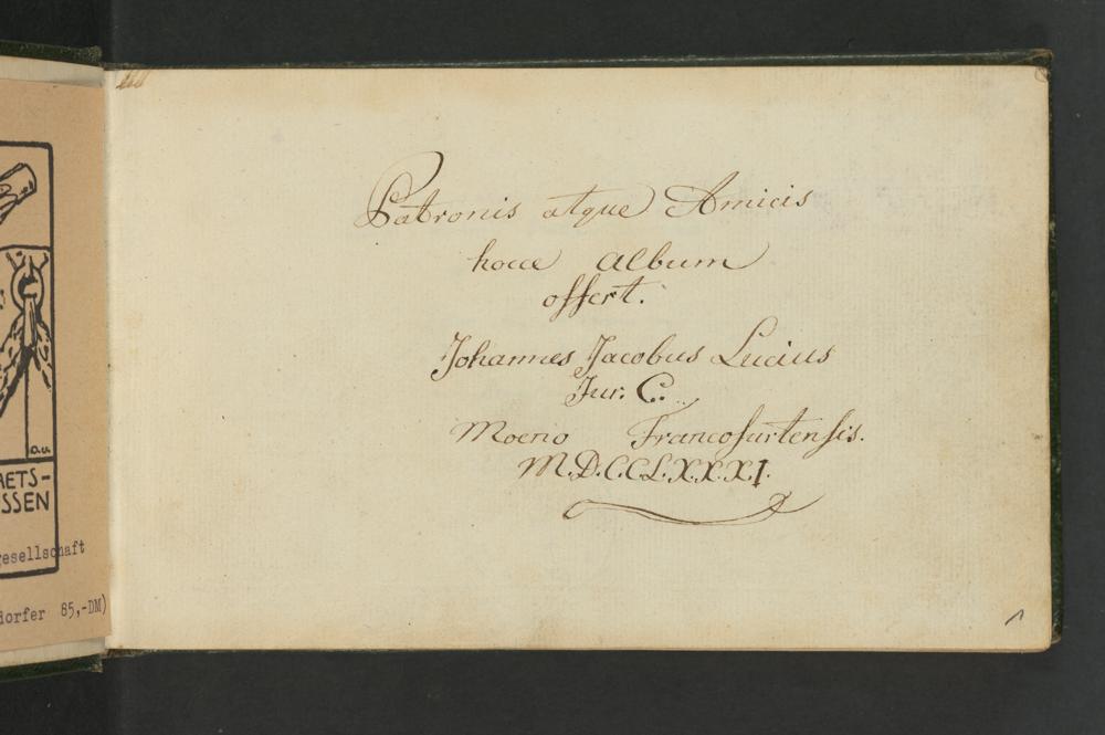 UB Gießen, Hs NF 2 - Stammbuch des Jurastudenten Johann Jacob Lucius, Jur. C. in Frankfurt am Main, während seines Studiums in Gießen. 1781-1786. - UB Gießen, Hs NF 2