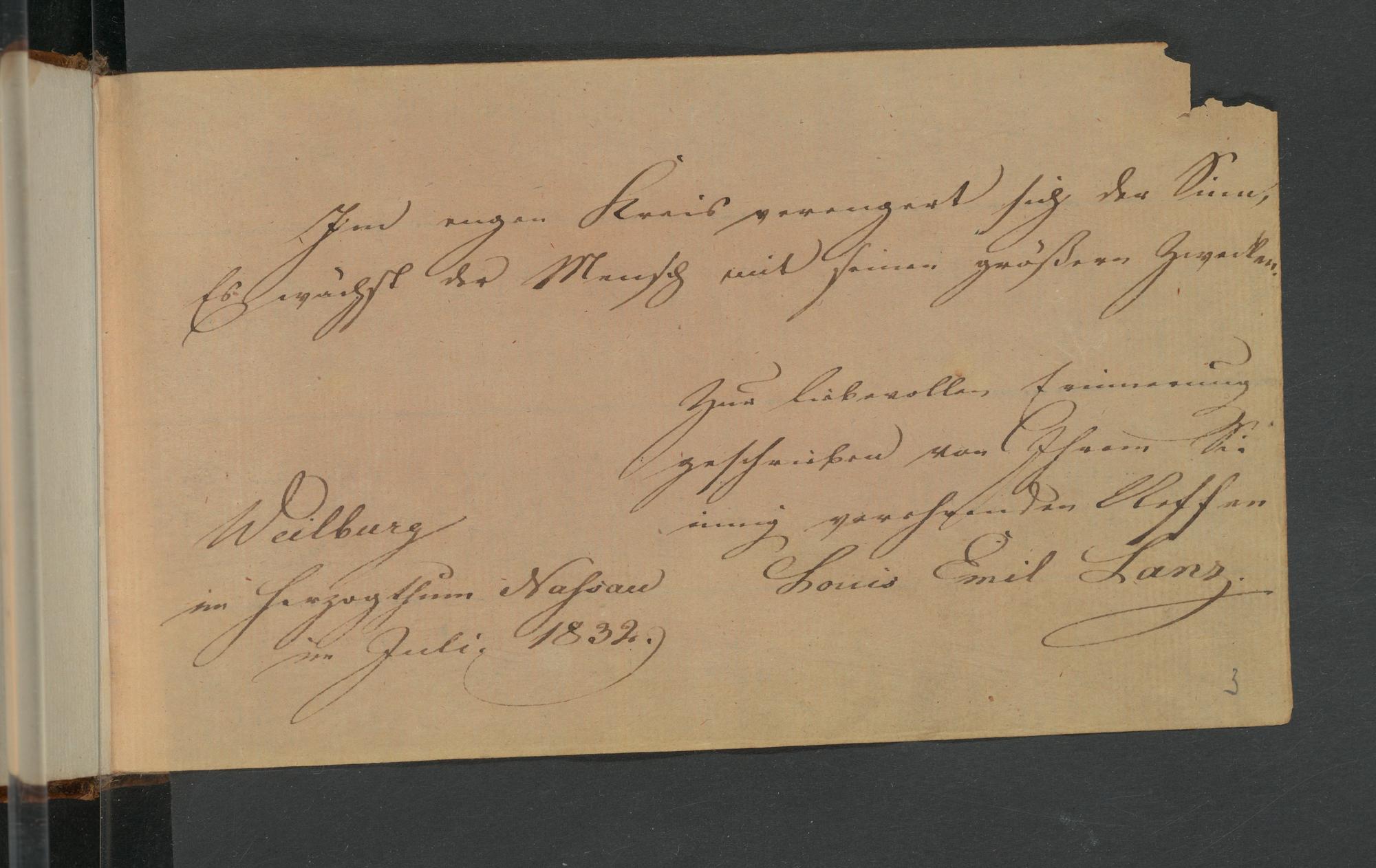 UB Gießen, Hs NF 646 - Stammbuch eines Lanz, aus den Kreisen der Gießener Amicisten, vermutlich stud. iur. Gottfried Lanz aus Pirmasens. 1788-1792. - UB Gießen, Hs NF 646