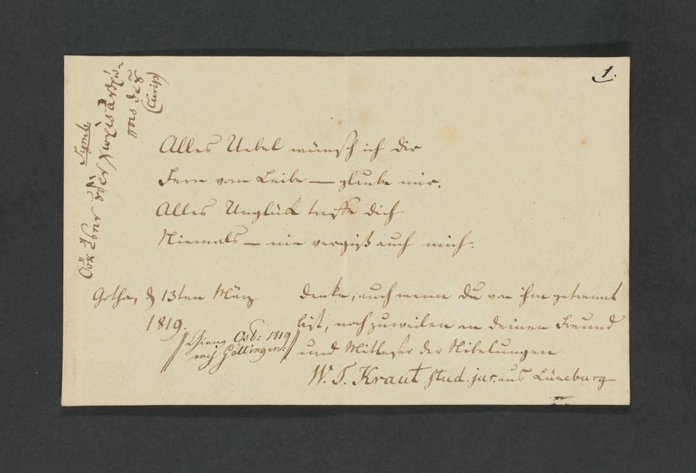 UB Gießen, Hs 1216t - Stammbuch des nachmaligen Legationsrats Eulner aus Reckrod bei Hersfeld. Mit Einträgen von Marburger Studenten. - UB Gießen, Hs 1216t