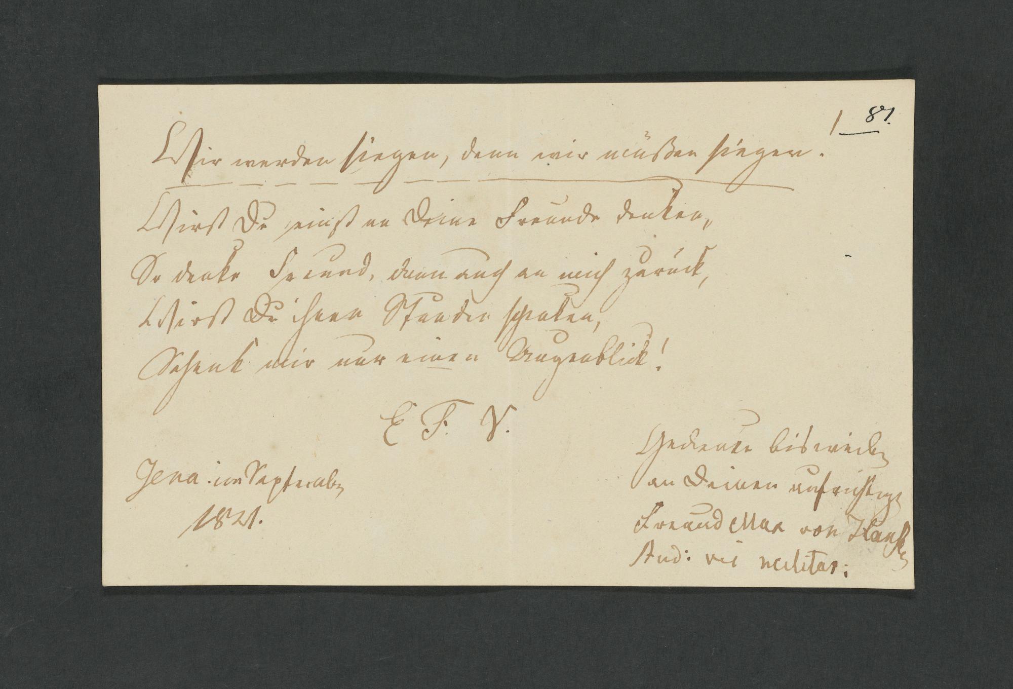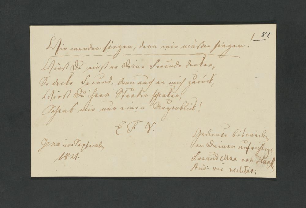UB Gießen, Hs 1216t - Stammbuch des nachmaligen Legationsrats Eulner aus Reckrod bei Hersfeld. Mit Einträgen von Marburger Studenten. - UB Gießen, Hs 1216t