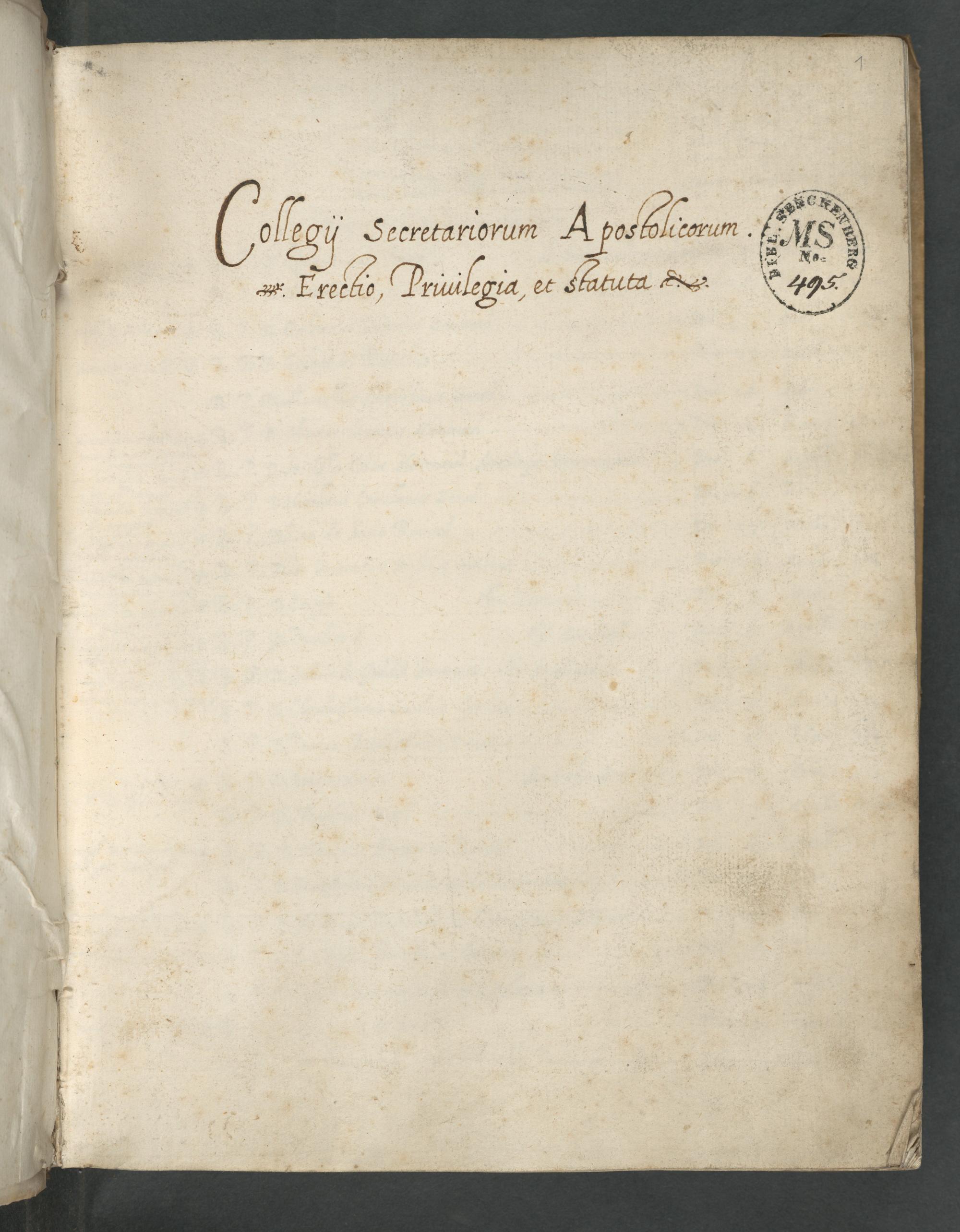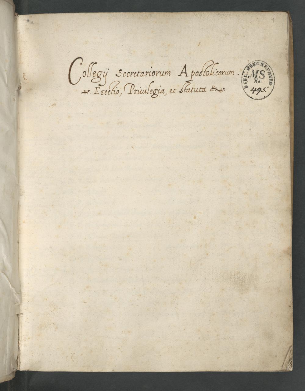 UB Gießen, Hs 634 - Collegii Secretariorum Apostolicorum Erectio, Privilegia et Statuta. - UB Gießen, Hs 634 / [Benedetto Lomellino]