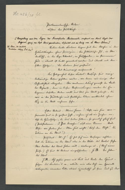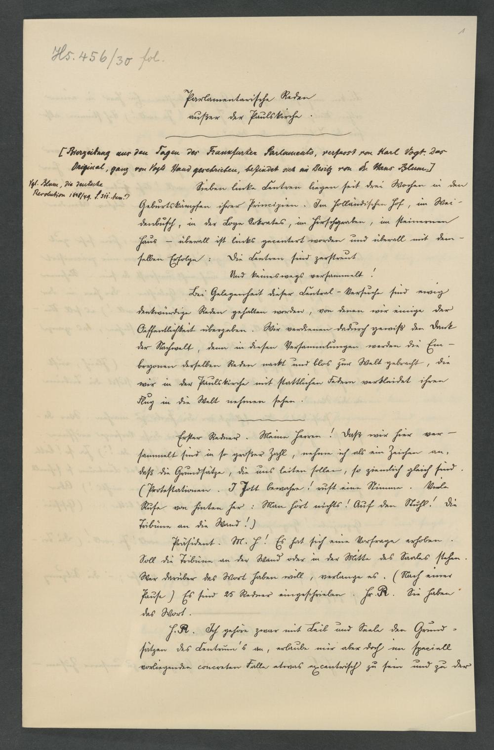 UB Gießen, Hs 456/30 - Bierzeitung aus den Tagen des Frankfurter Parlaments. - UB Gießen, Hs 456/30 / verfasst von Carl Vogt, Abschrift angefertigt 03.06.1908 [von Carl Vogt]