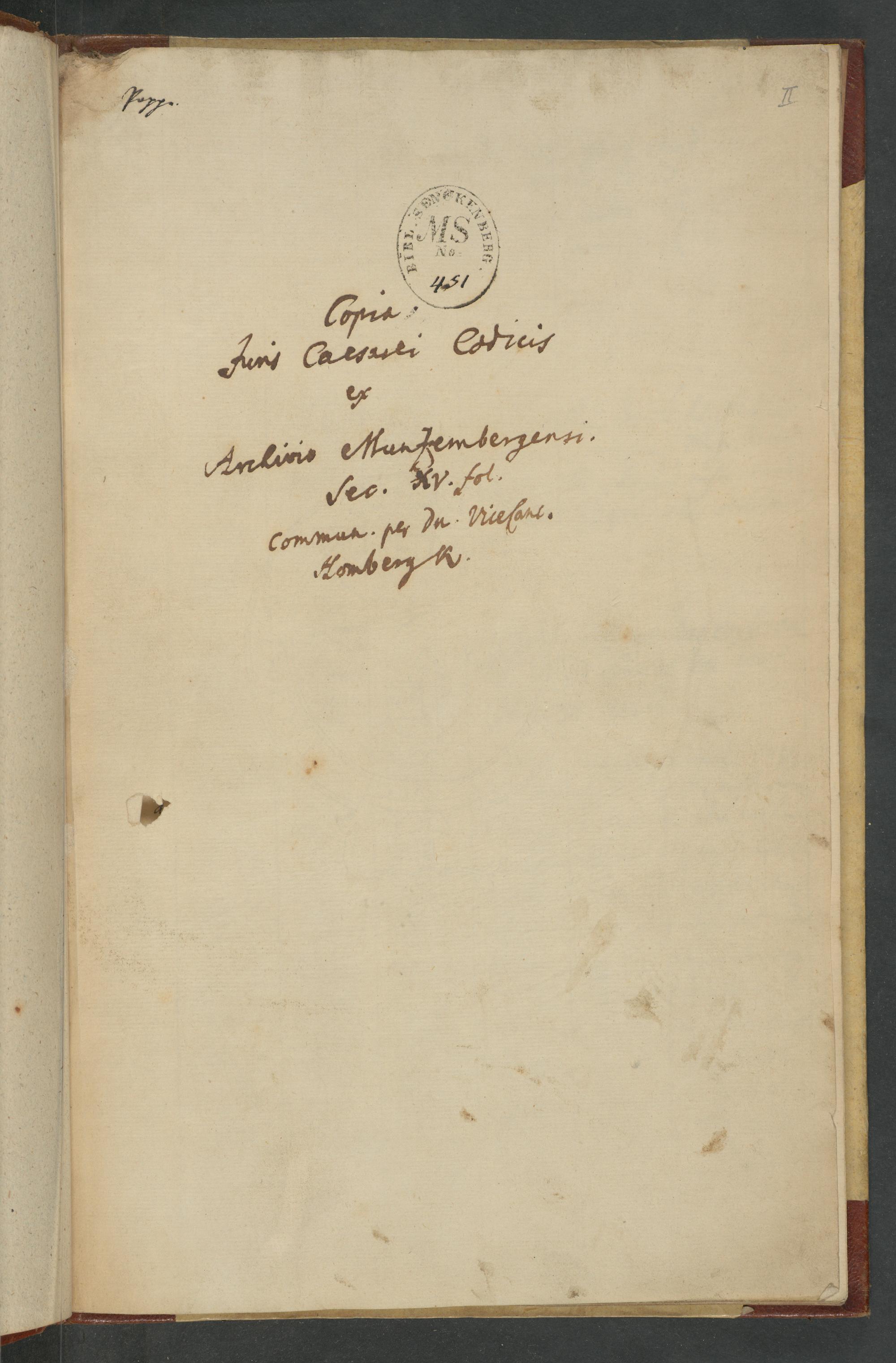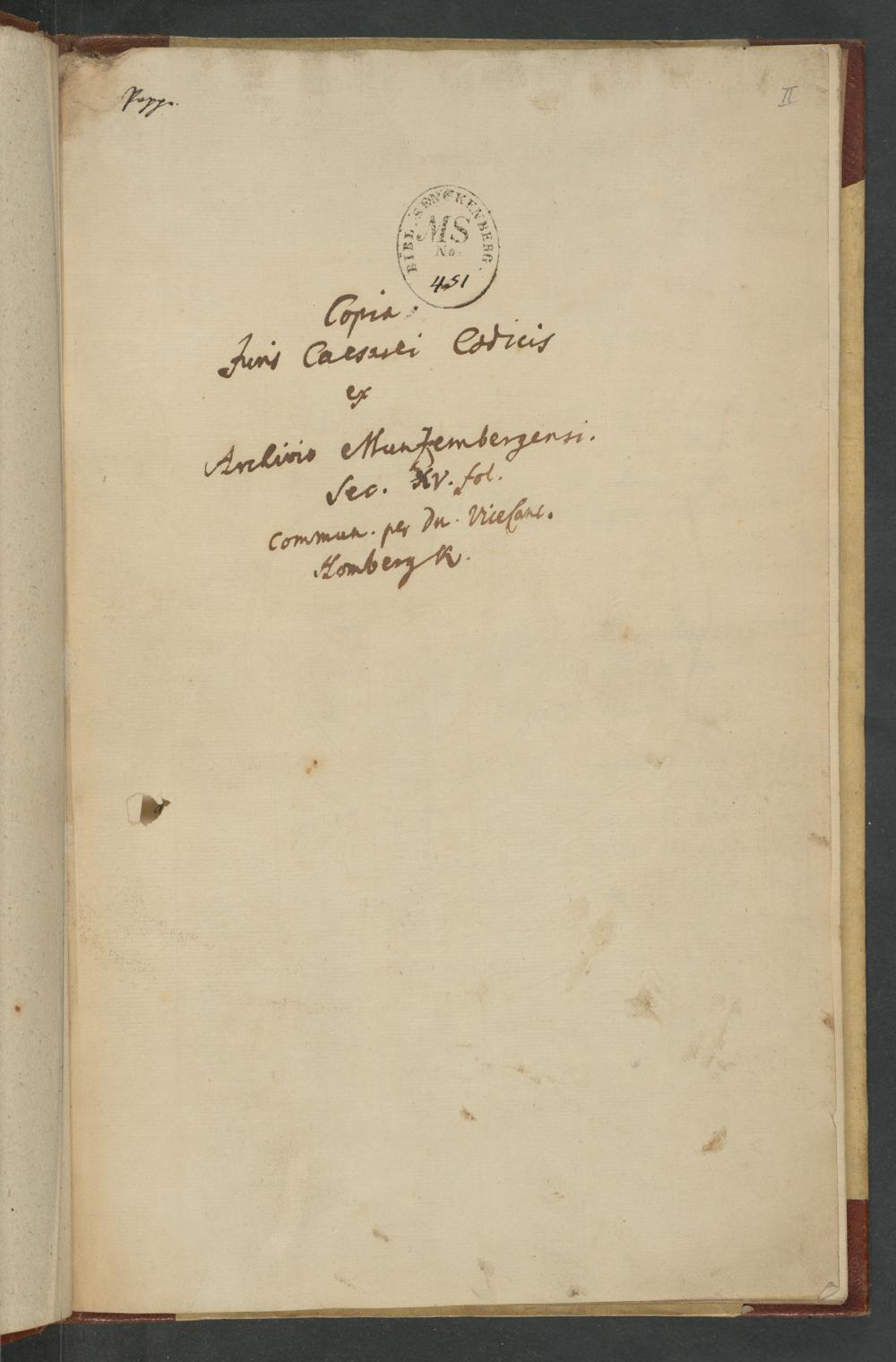 UB Gießen, Hs 995 - Copia Juris Caesaris : Codicis ex Archivio Munzenbergensis saec. XV. fol. - UB Gießen, Hs 995 / communicata per D. Vicecanzel. Hombergk
