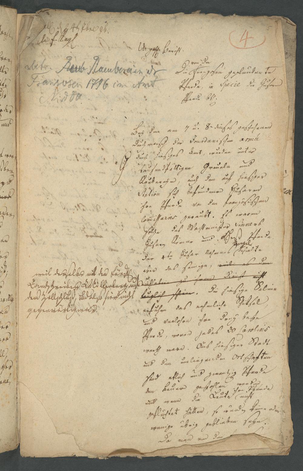 UB Gießen, Hs 505/50 - Nidda: Bericht nebst Beilagen über den Durchzug der Franzosen durch das Amt Nidda, insbesondere Lissberg (1796). - UB Gießen, Hs 505/50